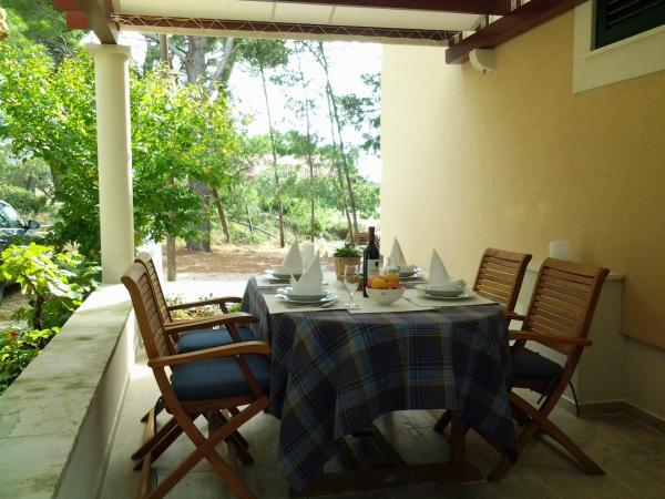 Partner i ja samo u označenom apartmanu bili pet dana i apartman nam je u svemu (veličini, opremi, čistoći) bio savršen. Savršena mu je i lokacija - u blizini trajektnog pristaništa, plaže Sakarun i Velikog rata gdje smo uživali u kupanju i zalasku sunca ležeći u podnožju svjetionika. Budući da apartman nema balkon, domaćini su nam dopustili koristiti se terasom, uključujući i roštilj. Hlad terase čini cvijet jasmina pa smo imali prilike uživati u mirisu cvjetova jasmina. Hlada, također, ima i na parkiralištu za osobna vozila. Domaćini su nas izrazito ljubazno primili - dočekali su nas na pristaništu, ljubazno i strpljivo odgovarali na sve naše upite, objasnili nam i uputili nas na sva mjesta otoka koja se nikako ne smiju zaobići, čak se i ponudili otići i kupiti nam kartu za trajekt.