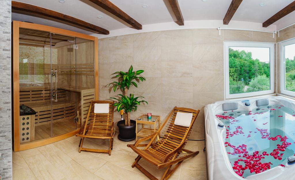 Turistička pristojba je uključena u cijenu.kuća za odmor kuća za manje proslave spa centar mini wellness jacuzzi finska sauna natkrivena terasa relax zona relax ležaljke šetnje šumom