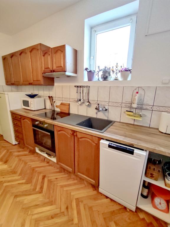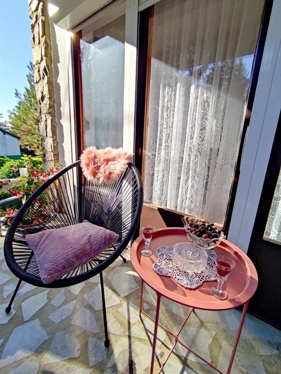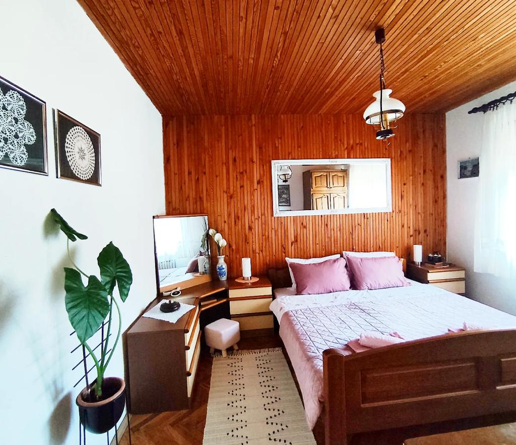 Apartman opremljen u slavonskom stilu, moderniziran, funkcionalan, okružen drvećem i potocima u selu Velika podno Papuka. Kuhinja je opremljena aparatima i suđem za pripremu i posluživanje hrane . U spavaćoj sobi je veliki bračni, ručno rađeni, hrastov krevet, te dvokrilni ormar, noćni ormarić i stol za šminkanje s ogledalom. U prostranom dnevnom boravku je kožni trosjed, dvosjed i fotelja, smart TV , a ima izlaz na terasu s vrtnim namještajem. Kupaonica je s podnim grijanjem, tušem i veš mašinom. Na raspolaganju vam je dvorište sa nadstrešnicom i velikim stolom s klupama, roštiljem, dječjim igralištem, trampolinom. Iza objekta je potok na kojem možete pecati ili se osvježiti u vrućim danima. Apartman se nalazi blizu Parka prirode, adrenalinskog parka, aquaparka, šume i vinograda. Od restorana je udaljen 300 m , do trgovine i benzinske crpke 1000 m.