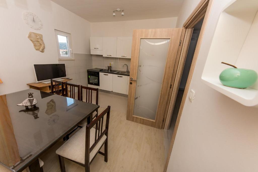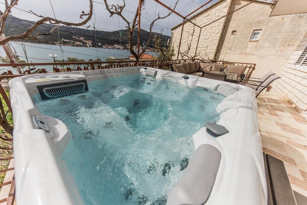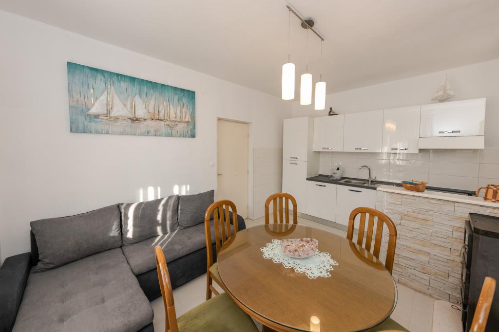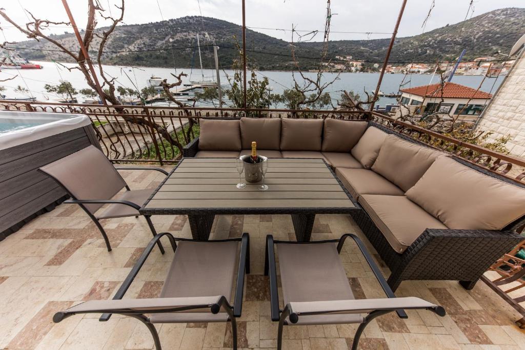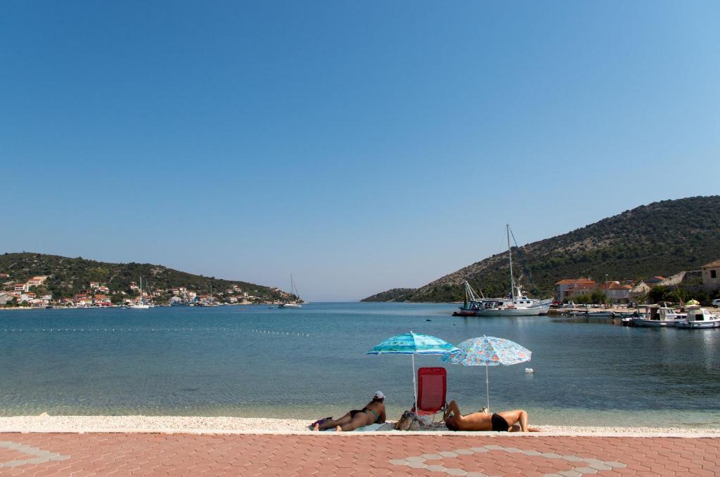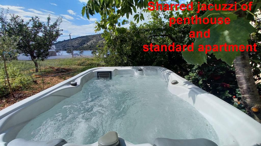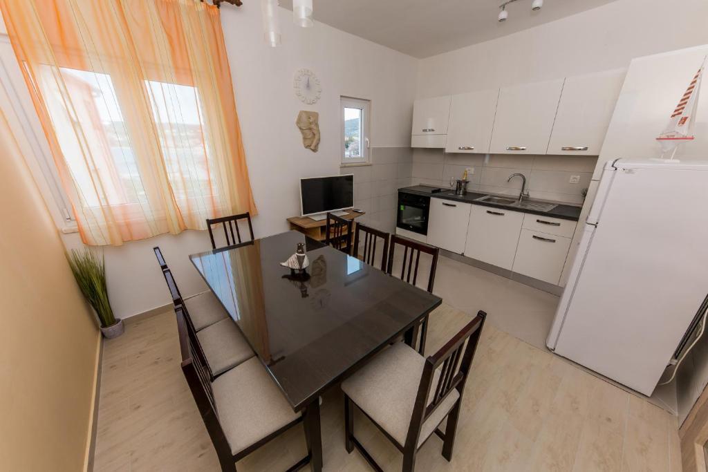 Apartmani Mate nalaze se u Vinišću, 15 km zapadno od Trogira. Kuća se nalazi 10 metara od mora i plaže, te ima veliki parking za 8 automobila. Kuća ima 5 apartmana: Apartman (6 2) Prizemlje s jacuzzijem: 3 sobe, kuhinja sa dnevnim boravkom, kupatilo i predvorje s jacuzzijem. Apartman (7) Prvi kat s jacuzzijem: 3 sobe, kuhinja sa dnevnim boravkom, 2 kupatila i velika terasa sa jacuzzijem. Apartman (5 1) Penthouse: 2 sobe, kuhinja sa dnevnim boravkom, kupatilo i veliki balkon. Zajednički jacuzzi. Apartman (4) Prvi kat s jacuzzijem s: 2 sobe, kuhinja, kupatilom i velika terasa s jacuzzijem. Apartman (4) Drugi kat : 2 sobe, kuhinja, kupatilom i balkon. Zajednički jacuzzi Svim gostima na raspolaganju je vanjski roštilj. Gosti mogu koristiti bicikle, kajak i sup board. Kuća je: - 10 metara od mora i plaže -100 metara od restorana -150 metara od dućana