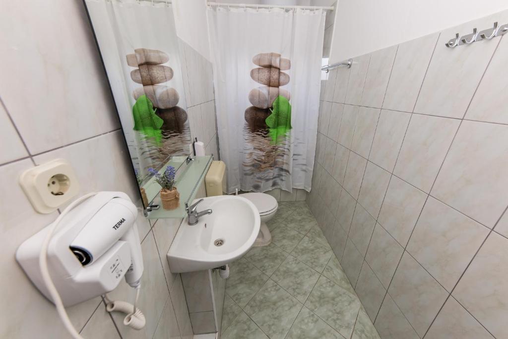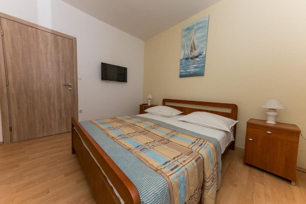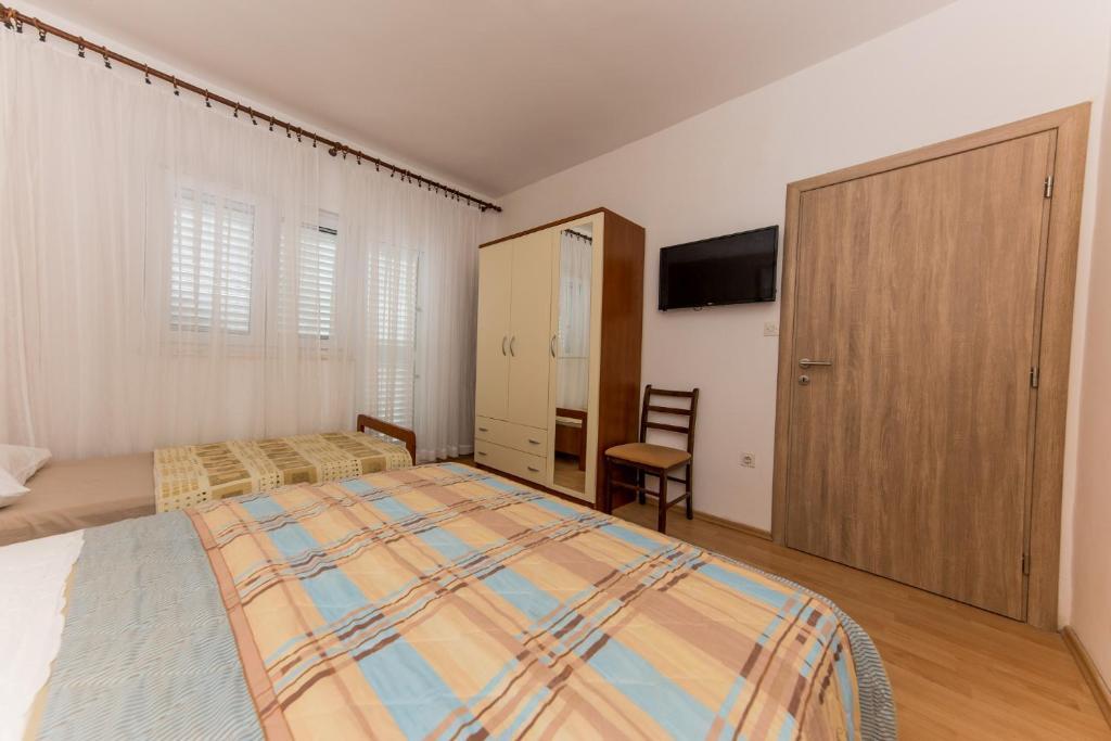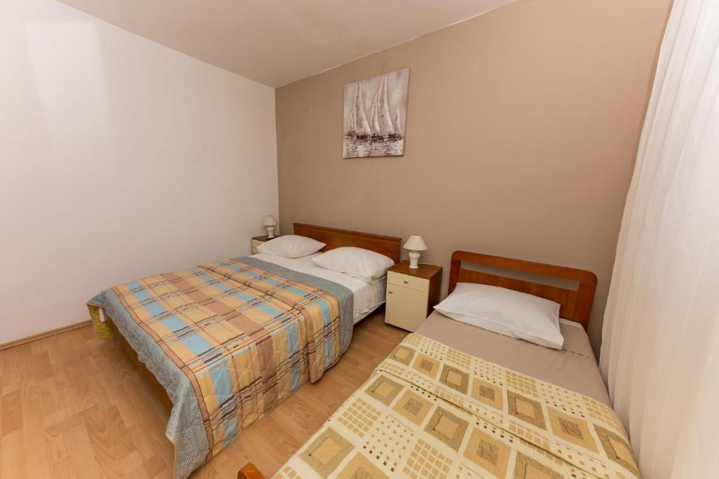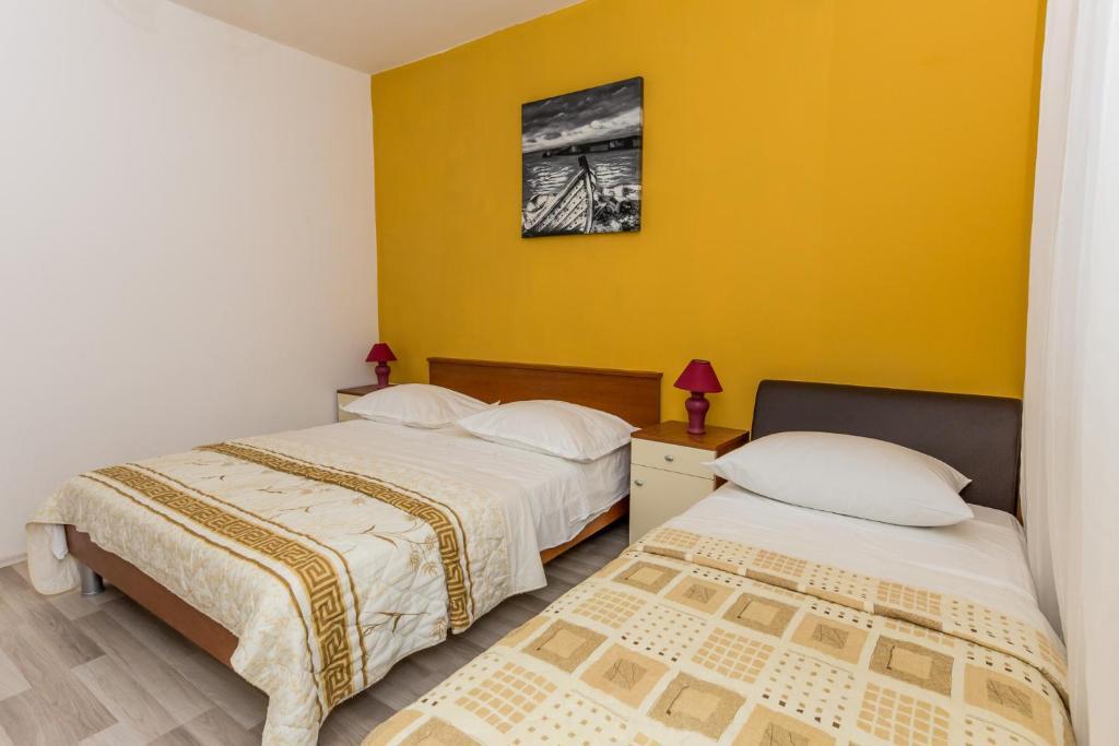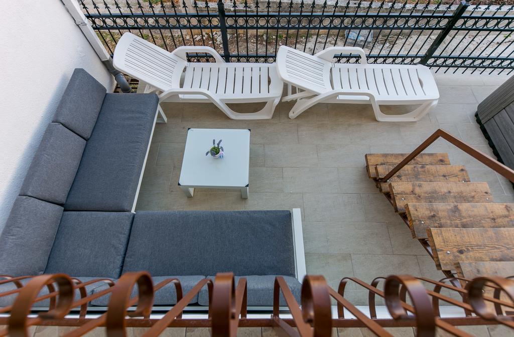 Apartmani Mate nalaze se u Vinišću, 15 km zapadno od Trogira. Kuća se nalazi 10 metara od mora i plaže, te ima veliki parking za 8 automobila. Kuća ima 5 apartmana: Apartman (6 2) Prizemlje s jacuzzijem: 3 sobe, kuhinja sa dnevnim boravkom, kupatilo i predvorje s jacuzzijem. Apartman (7) Prvi kat s jacuzzijem: 3 sobe, kuhinja sa dnevnim boravkom, 2 kupatila i velika terasa sa jacuzzijem. Apartman (5 1) Penthouse: 2 sobe, kuhinja sa dnevnim boravkom, kupatilo i veliki balkon. Zajednički jacuzzi. Apartman (4) Prvi kat s jacuzzijem s: 2 sobe, kuhinja, kupatilom i velika terasa s jacuzzijem. Apartman (4) Drugi kat : 2 sobe, kuhinja, kupatilom i balkon. Zajednički jacuzzi Svim gostima na raspolaganju je vanjski roštilj. Gosti mogu koristiti bicikle, kajak i sup board. Kuća je: - 10 metara od mora i plaže -100 metara od restorana -150 metara od dućana