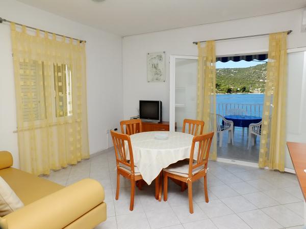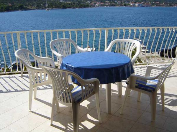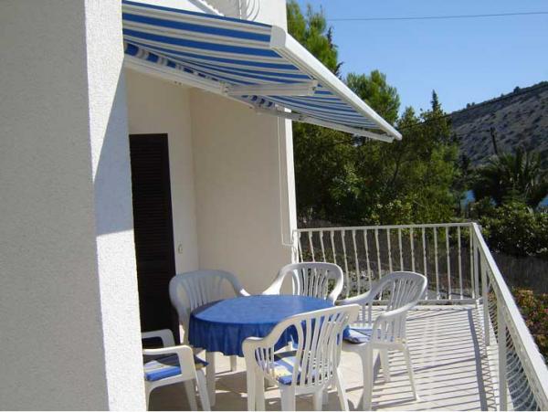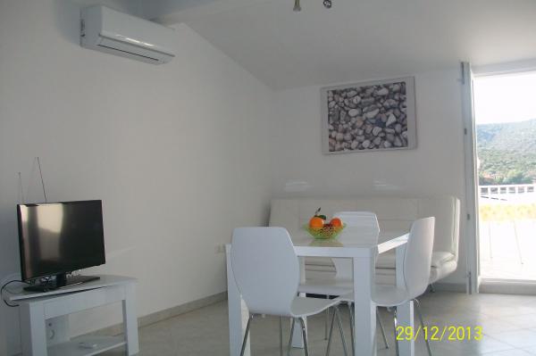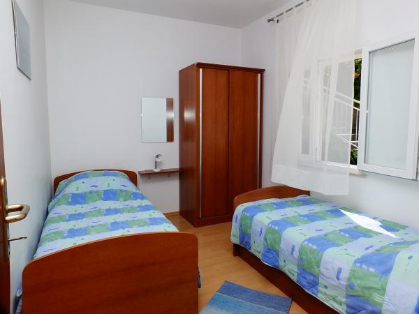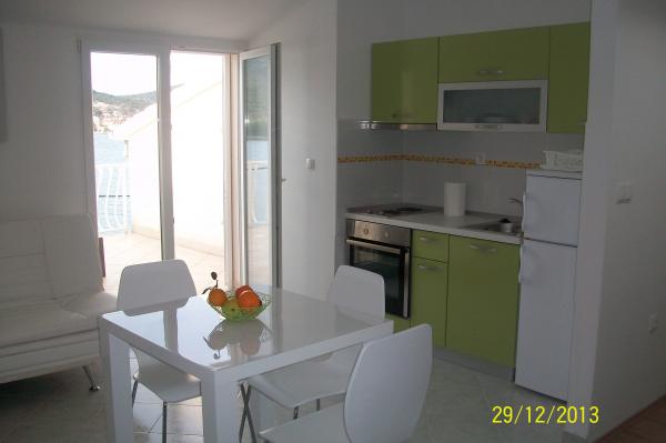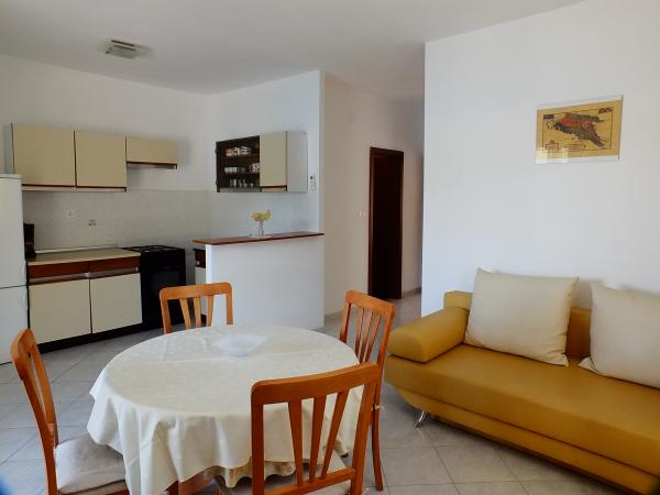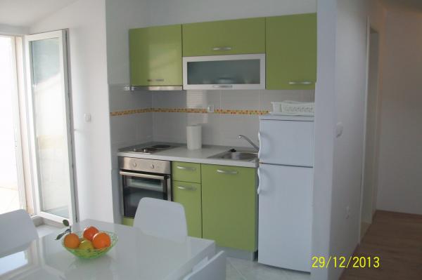 Apartman od 48 m2 s pogledom na more velika terasa od 20 m2,dvije spavaće sobe,kupatilo s tuš kabinom,kuhinja opremljena s električnim štednjakom,frižiderom i zamrzivačem,mikrovalna pećnica i aparat za kavu,dnevni prostor s kaučem, tv sa satelitskim programom, besplatni Wi-Fi i klima uređaj.Parking se nalazi u sklopu objekta. Studio apartman od 36 m2 s pogledom na more, terasa od 12 m2.Opremljen je sa električnim štednjakom, frižiderom sa zamrzivačem, aparat za kavu,kauč, satelitska tv, besplatni Wi-Fi i klima uređaj. Parking u sklopu objekta..
