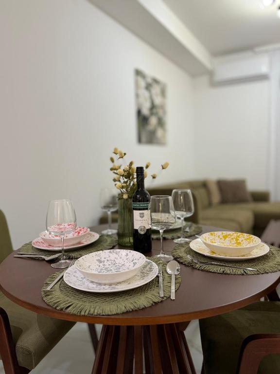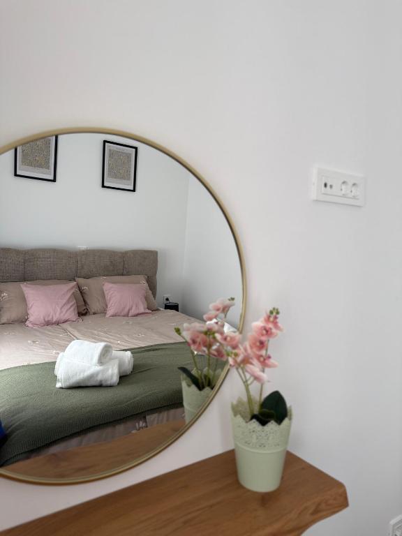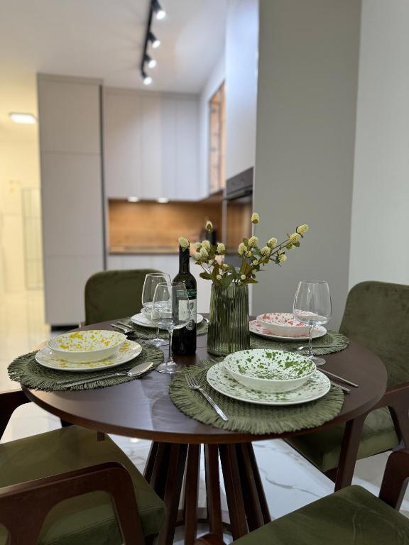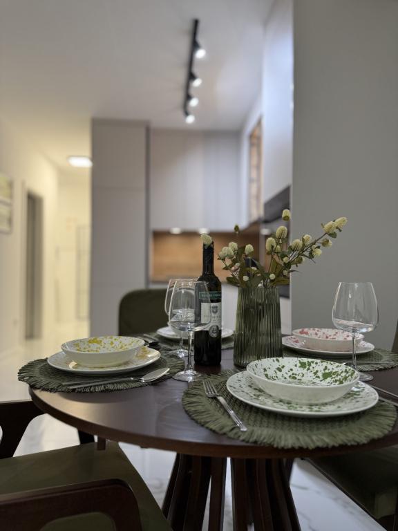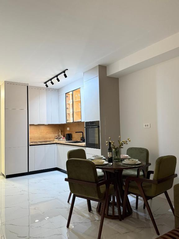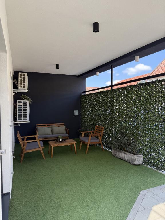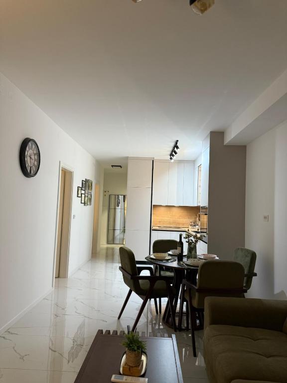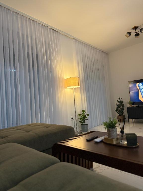 Dobrodošli u Apartman Dukat, moderan apartman u novogradnji smješten u strogom centru Vinkovaca! Ovaj elegantno uređen prostor u prizemlju (bez stepenica) idealan je za obitelji, parove ili poslovne putnike. Apartman raspolaže vlastitim parkirnim mjestom u dvorištu te prostranom terasom (18m2) za opuštanje. Potpuno je opremljen kako bi Vaš boravak bio što ugodniji: moderna kuhinja s ugradbenim hladnjakom, pločom za kuhanje, pećnicom, aparatom za kavu, mikrovalnom pećnicom i posuđem za pripremu jela. Za maksimalnu udobnost tu su i podno grijanje, klima uređaj, besplatan Wi-Fi, TV ravnog ekrana, kao i sve potrebne toaletne potrepštine. Smještaj je prilagođen za do četiri osobe, uz mogućnost smještaja još dvije osobe na pomoćnom ležaju. Njegova lokacija omogućuje da sve gradske znamenitosti, restorane i sadržaje dosegnete u samo nekoliko minuta šetnje. Rezervirajte Apartman Dukat i doživite Vinkovce u srcu grada uz udobnost i praktičnost na jednom mjestu!
