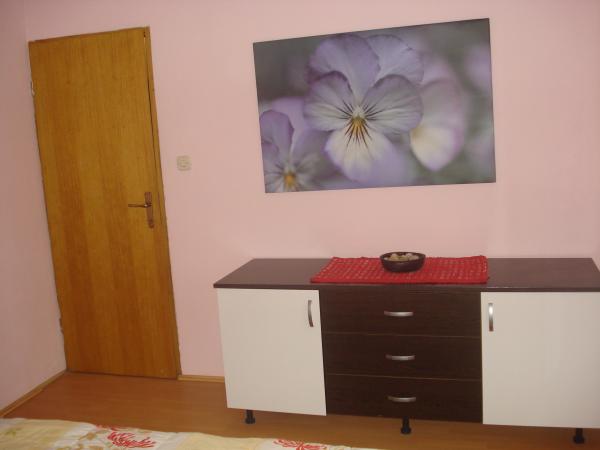 Moderno uređeni apartmani samo pet minta od centa i 10-tak od mora za 4-6 osoba, 3 spavaće sobe, (2 sa bračnim krevetom i 1 sa krevetom na razvlačenje), kupaonica,dnevni boravak sa blagavaonicom i kuhinjom,klima,TV, terasa 20 m2, parkirno mjesto u ograđenom dvorištu. Mogućnost korištenja roštilja. Plaža djelomično betonska a djelomično šljunčana, u moru pješčano dno.