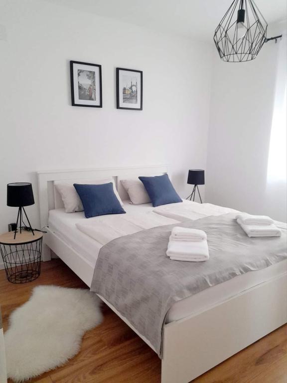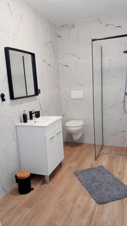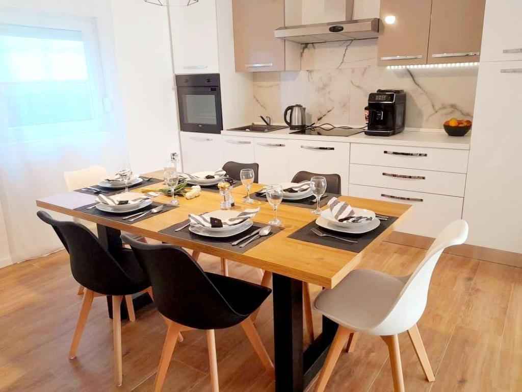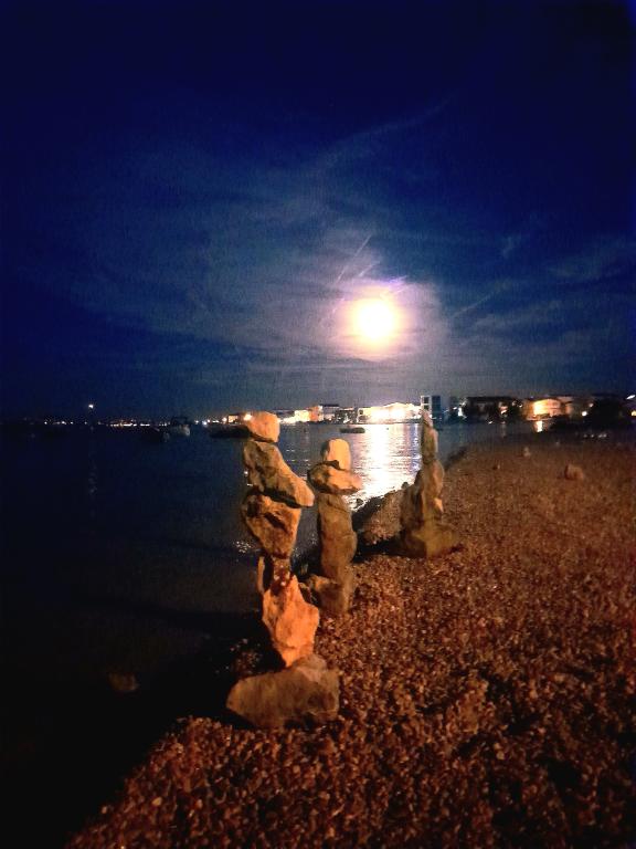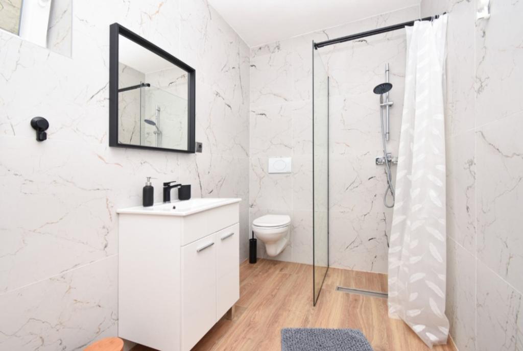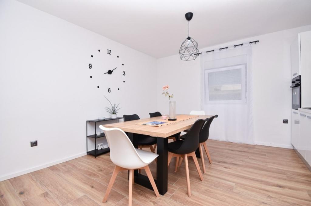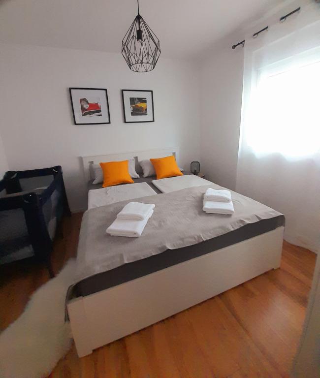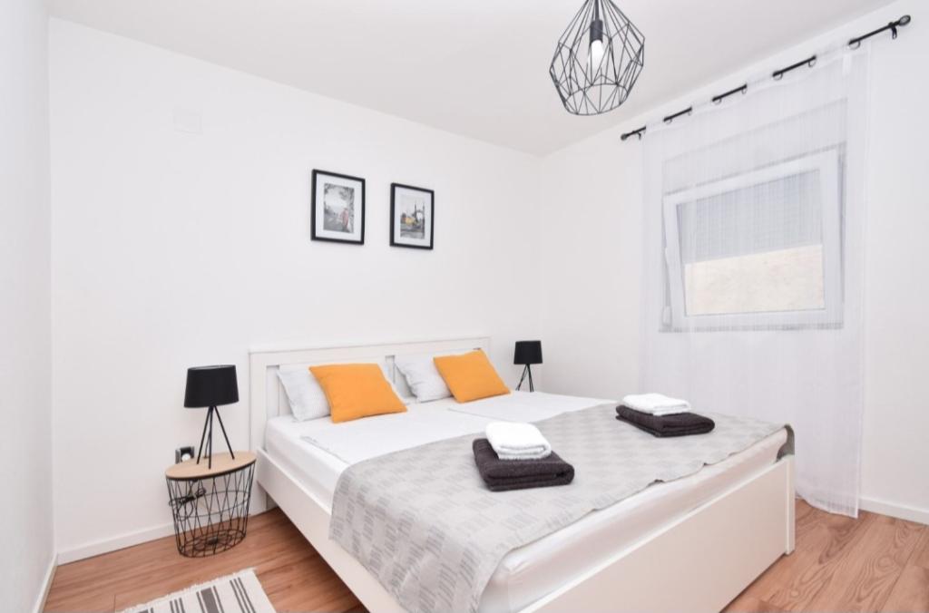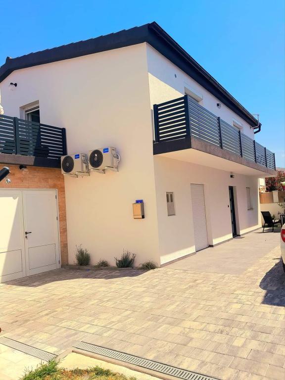 Kompletno i suvremeno opremljen apartman u prizemlju 90m2 u mirnom predjelu. Smješten drugi red od mora, 40 metara od prekrasne plaže i šetnice uz more. Restorani, pekare i trgovine nalazi se u krugu od 50 metara. Kuhinja je opremljena svim aparatima od perilice posuđa, pećnice, el.ploča za kuhanje te kuhala za vodu. Besplatan WiFi i klima uređaj. Svaki gost dobije na korištenja 2 ručnika. Također ako imate malu bebu u sobi se nalazi kinderbet.
