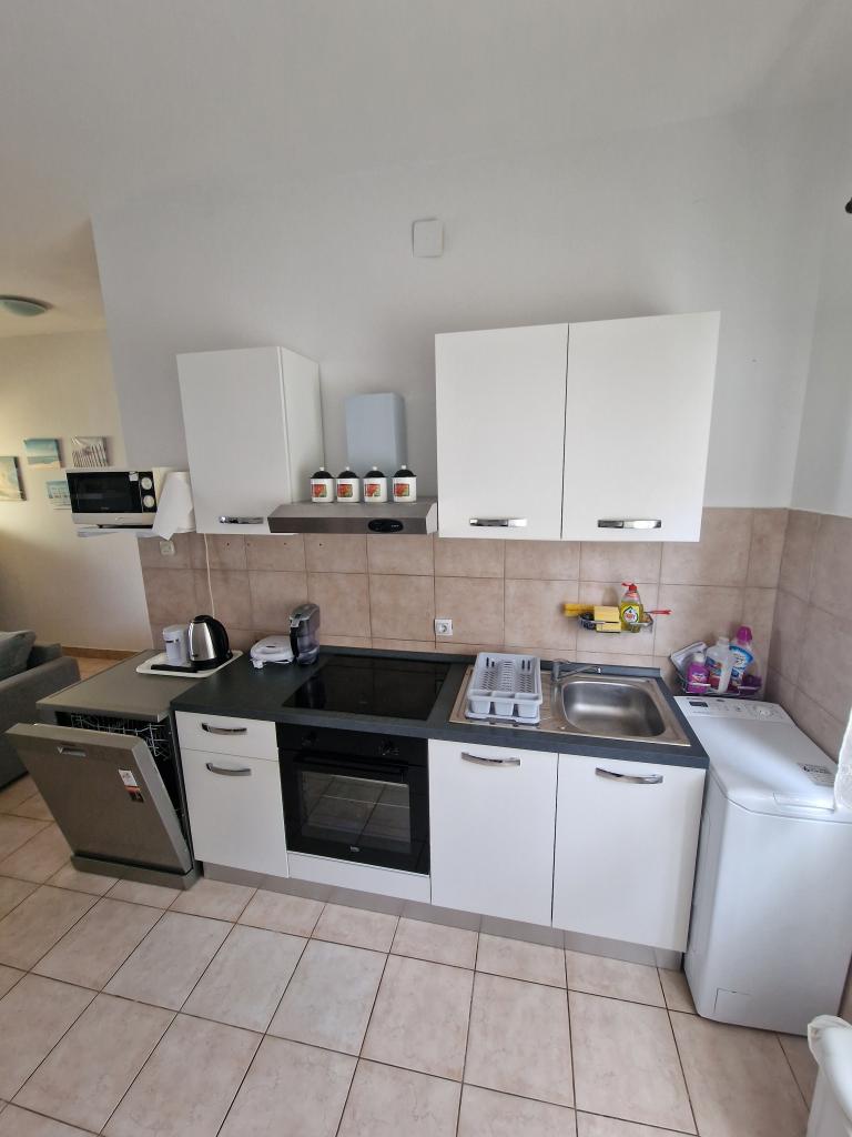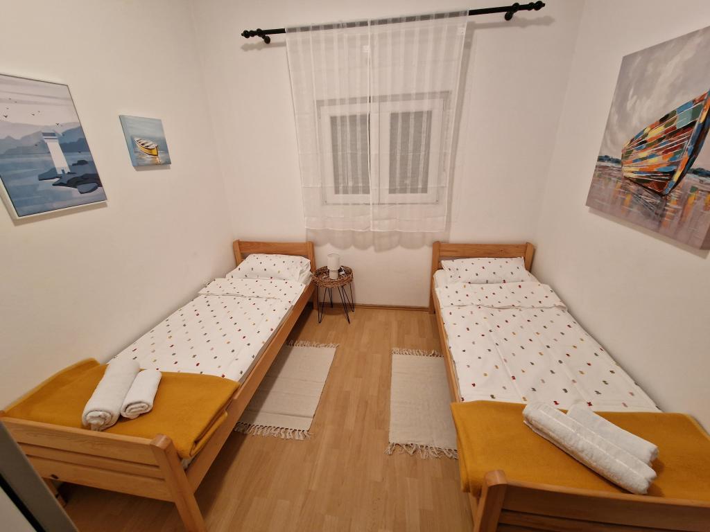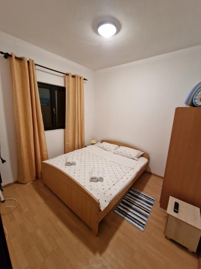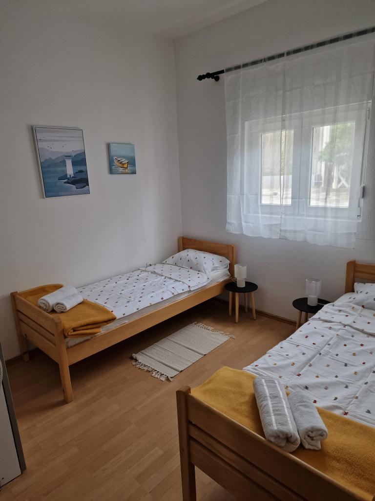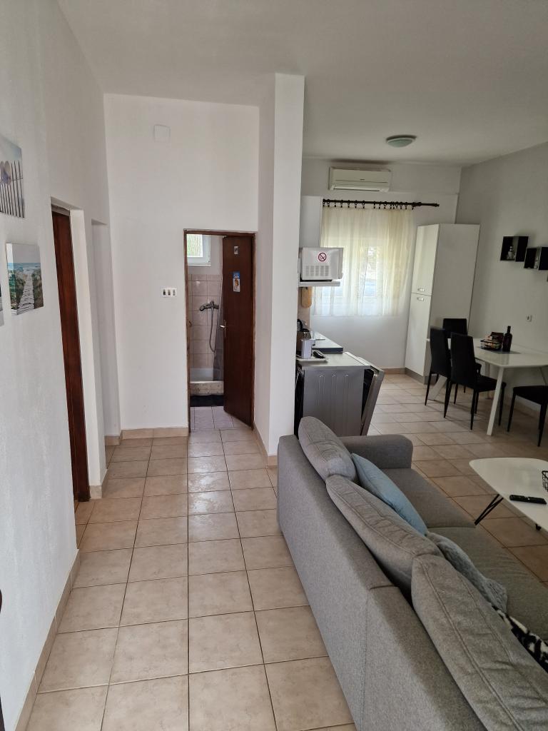 Kompletno opremljen apartman u mirnom dijelu otoka, koji se do sad koristio isključivo za potrebe obitelji vlasnika. Sastoji se od 2 spavaće sobe (bračni krevet i dva odvojena kreveta koji se mogu spojiti u bračni), kuhinje, blagavaone, boravka sa ogromnim TV-om, WC/tuš, lođa. Do najbližih plaža ima 10 minuta hoda, dućan je 5 minuta udaljen, do centra je 3km gdje su kafići, klubovi, restorani i veće trgovine. Ulica u dvorište nije prometna te je odlična za djecu, kojih zna biti dosta u ulici. Parking je u dvorištu.
