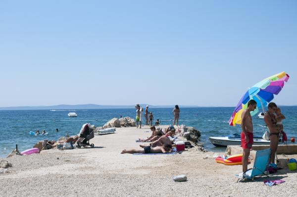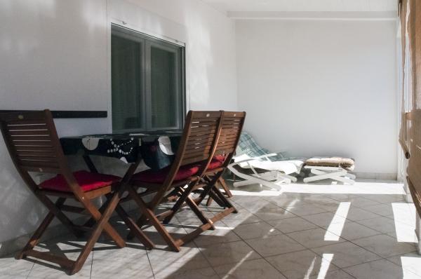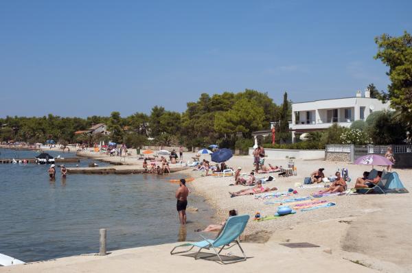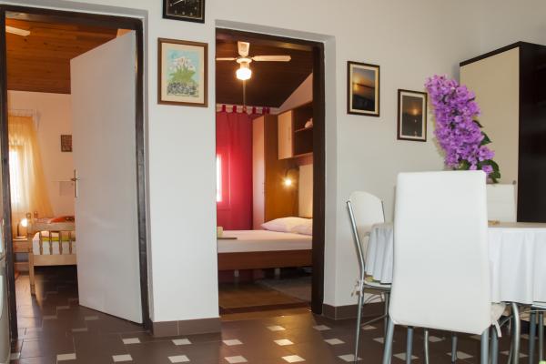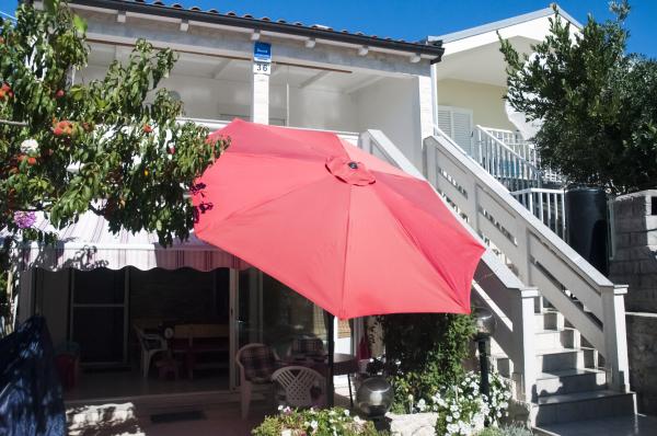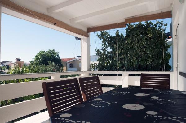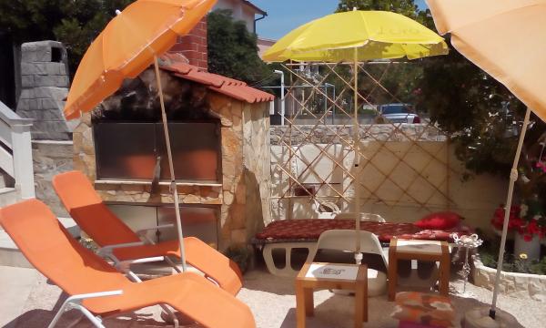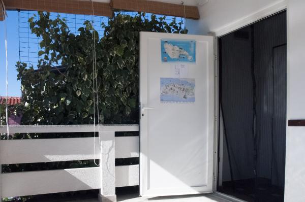 Na južnoj strani otoka Vira izdajemo 2 sobni apartman lijep i uredan, a sastoji se od spavaće sobe, dječje sobe, dnevnog boravka sa kuhinjom, kupatilo i lijepe terase. Jedno parkirno mjesto osigurano u dvorištu. Upotreba grilla dozvoljena. Kućni ljubimci nisu dozvoljeni. Pušenje dozvoljeno na nadkrivenoj tersi (15 m2 ). Spojen na gradski vodovod i kanalizaciju.