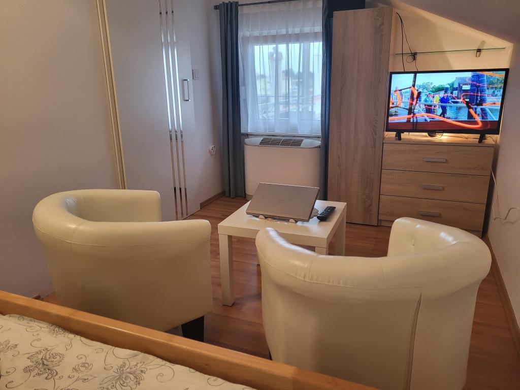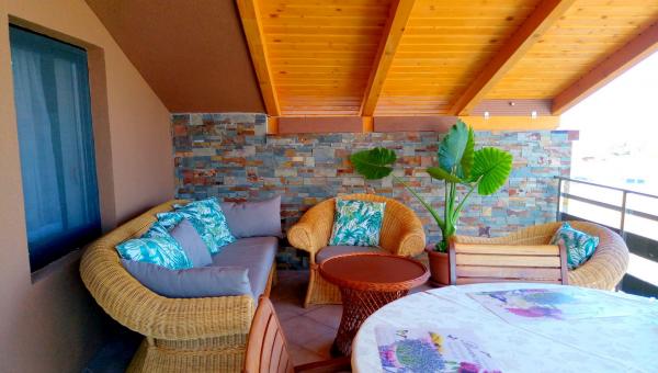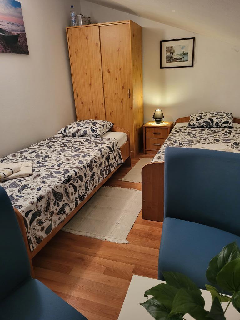 Apartman je u potkrovlju male kuće. Najmanji je i najtjesniji u kojem smo ikad bili. Osim toga nepodnošljivo je vruće u njemu zbog užarenog betonskog plafona koji je u spavaćim sobama toliko nizak da stalno udarate glavom. Propuh ne možete napraviti jer ima samo po jedan mali prozor u sobi i zbog toga vam je stalno zagušljivo i nedostaje vam kisika. Klima je slaba i vlasnik ju pali i gasi kad njemu odgovara jer se klima pali u prizemlju kuće gdje su vlasnici stalno. Tople vode ima malo i voda nije za piće. Sobe su male i tijesne, do ormara se mora puzati preko kreveta, a kreveti su neudobni. Nikako se nismo mogli naspavati, a kad bi se probudili sve nas je boljelo. Dnevnog boravka nema. Vrata udaraju jedna od druga kod otvaranja. Kuhinja je mala, tijesna, ima stol na rasklapanje za kojim mogu jesti samo dvoje. Kuhalo je plinsko, pećnice nema. Na balkonu je preko dana jako vruće pa se može koristiti tek uvečer, ali tad ima puno komaraca. Preko puta balkona je susjedova kuća, pa nemate nikakve privatnosti kao ni od vlasnika. Lokacija je jako loša, nema ni jednog restorana, trgovine, sladoleda ni pekarne u blizini, do navedenog morate ići autom u centar jer pješke ima više od pola sata ulicom bez nogostupa i rasvjete što se ne preporučuje. Roštilj je kod vlasnika u šupi kojeg ne možete koristiti bez njega.Wi-FI loš i spor kao i signal na mobitelima. Sve u svemu ne zadovoljava.