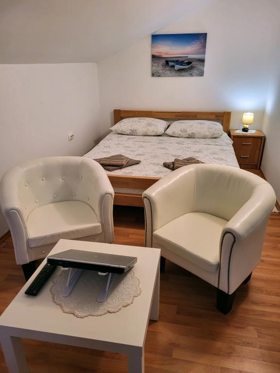Apartman je vrlo blizu plaže i kafić na plaži. Plaža je stvarno super i za djecu i za odrasle. Gospodin Josip i gospođa Milica pravi domaćini. Kad vam nešto zateba uvijek su voljni pomoći. Apartman je čist,sa dvije odvojene sobe i velikom prekrasnom terasom gdje imate svoju privatnost od bilo koga.Jednom riječju apartman za poželjeti. Hvala vam još jednom što ste tako uslužne prema svojim gostima.
