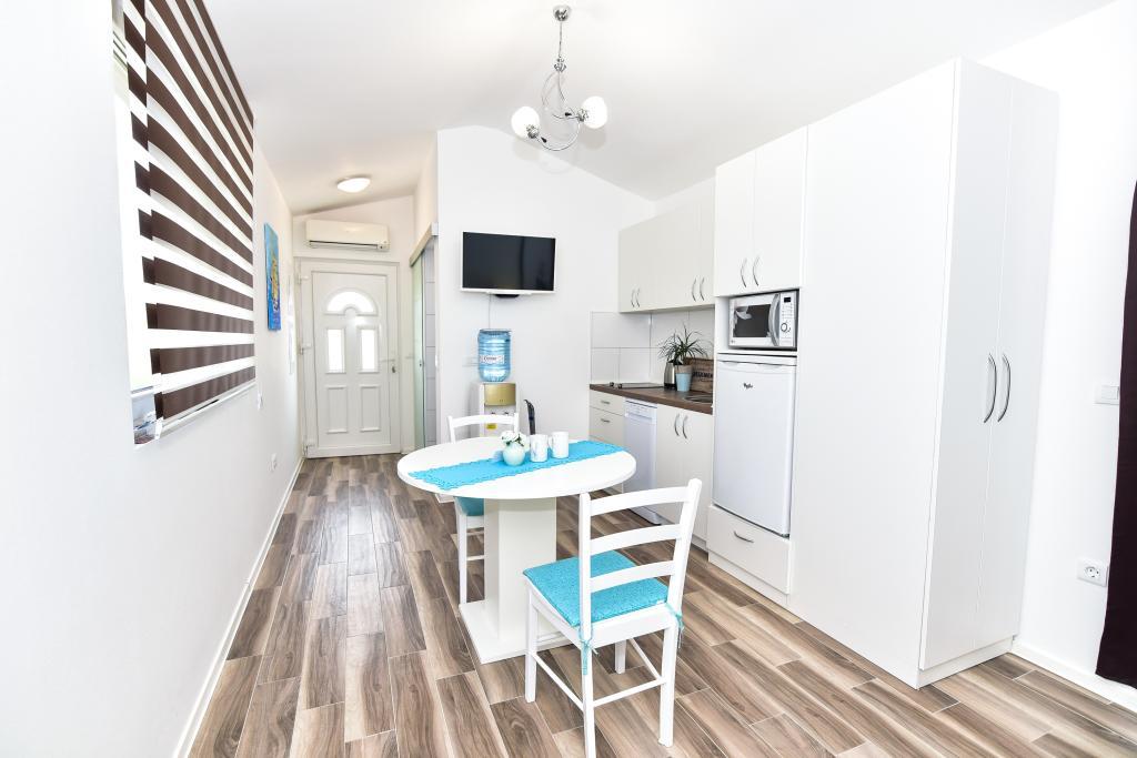 Apartman kompletno i moderno uređen za ugodan i nezaboravan odmor(klima,wifi,smart tv,max tv,netflix,perilica posuđa,zaseban roštilj u dvorištu,parking) 300m od plaže,sve što vam je potrebno nalazi se u neposrednoj blizini tako da auto ne morate niti koristiti. Do plaže ima 5min laganog hoda,na plaži restoran. Do centra imate 900m. Apartamn nudi potpunu privatnost i mogućnost nezaboravnog odmora.