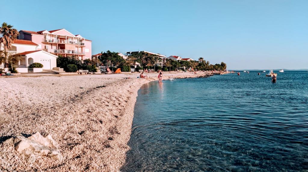 Stan odličan, jako lijep i dobro opremljen. Vlasnici su vrlo ljubazni, gostoljubivi i uslužni (gospođa je ispekla vrlo dobar kolač i čokoladne kroasane, gospodin nam je pripremio izvrsnu ribu na žaru, lignje, škampe ... S jedne strane stana je terasa, a s druge strane balkon s prekrasnim pogledom na more. Plaža je vrlo blizu i pogodna je za malu djecu. Nadam se da ću se vratiti sljedeće godine.Simona i Andreja s obitelji