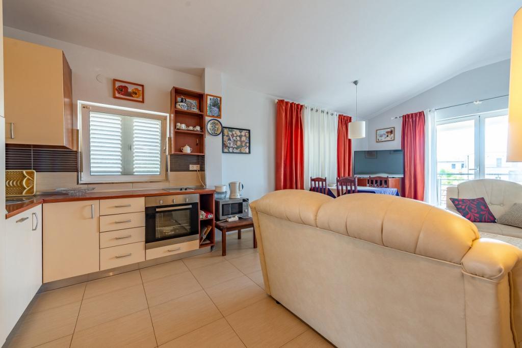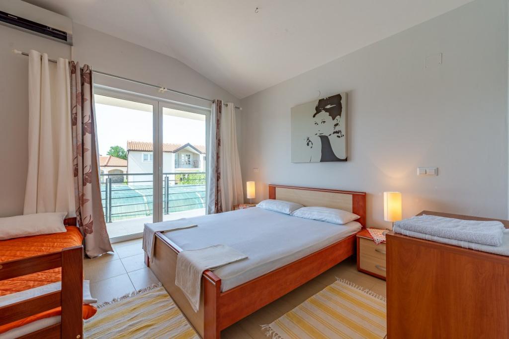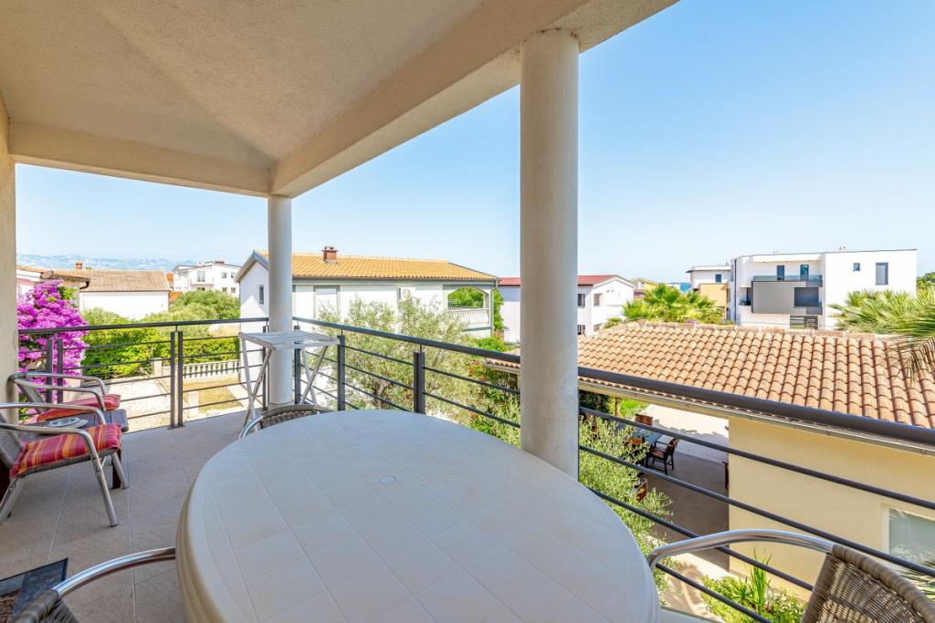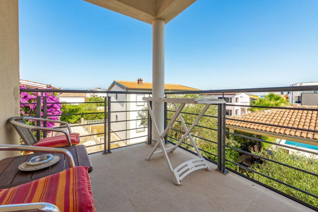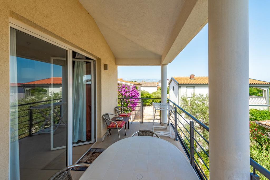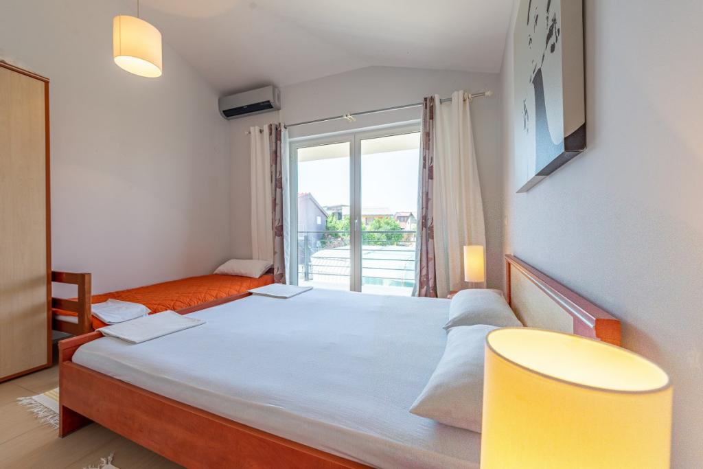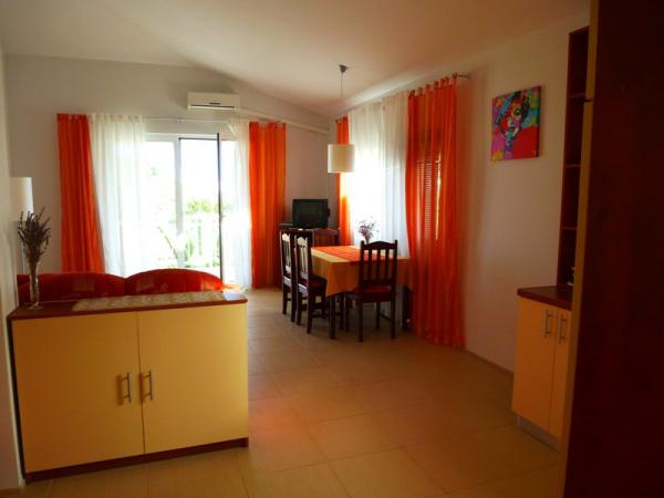 Apartmani se nalaze na I katu kuće za odmor, udaljeni cca 180 m od plaže Jadro i centra Vira. Plaža Jadro najpoznatija plaža na Viru. Apartmani su prostrani sa jednom spavaćom sobom koja ima francuski krevet i još jedan dodatni ležaj. i dnevnim boravkom koji ima ležaj na razvlačenja. Vlasnik prima 2 odrasle osobe sa dvoje djece, ili pak 3 odrasle osobe i 1 dijete. Ima 2 terase.Terase su okrenute prema moru, druga terasa na sjevernoj strani.Apartmani imaju klime, tv, sat, wifi. Parking je ispred apartmana. Preko agencije Vir turizam organizirani su izleti na Kornate, Nacionalne parkove Krka, Paklenica, Plitvice. Najam bicikala, glisera i brodica. Škola ronjenja. Bazen se može koristiti samo od 01.06. - 30.06.