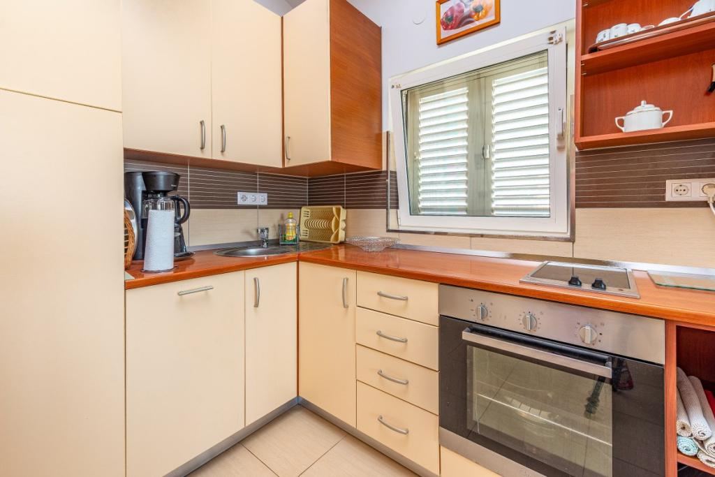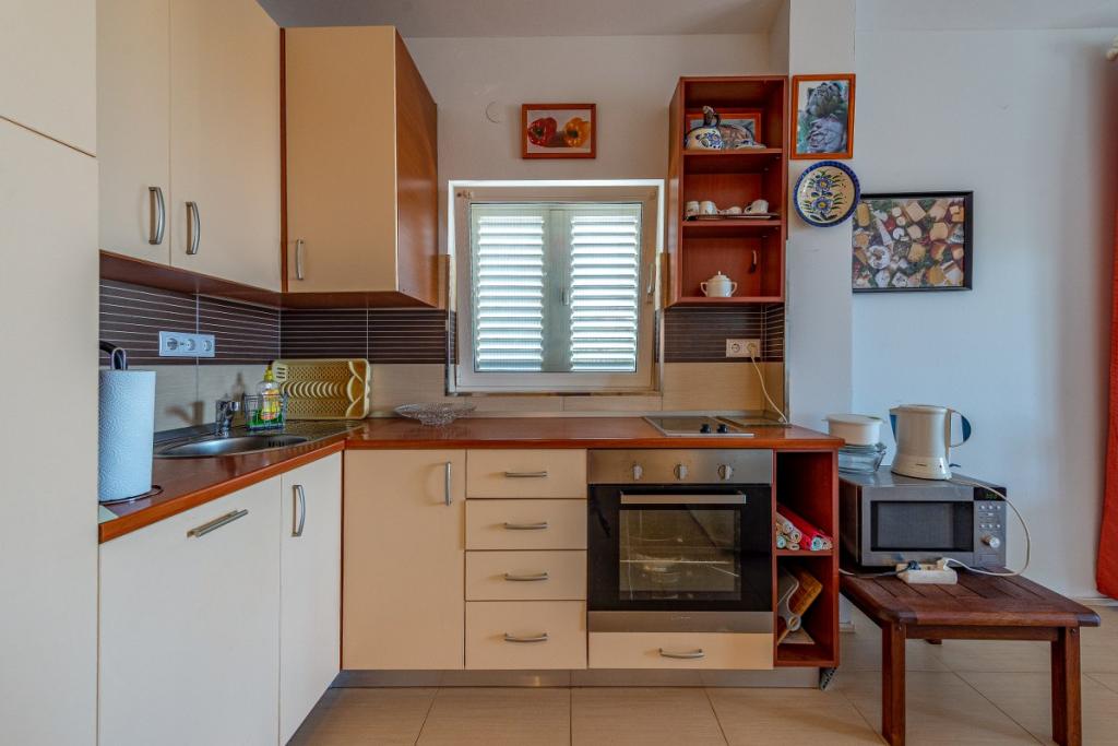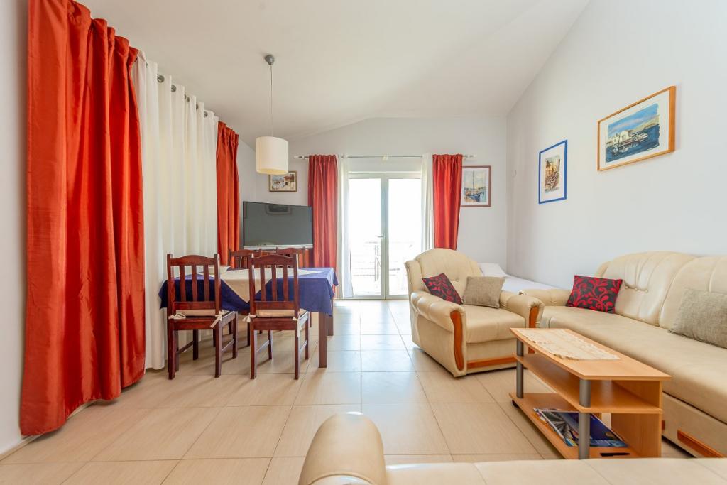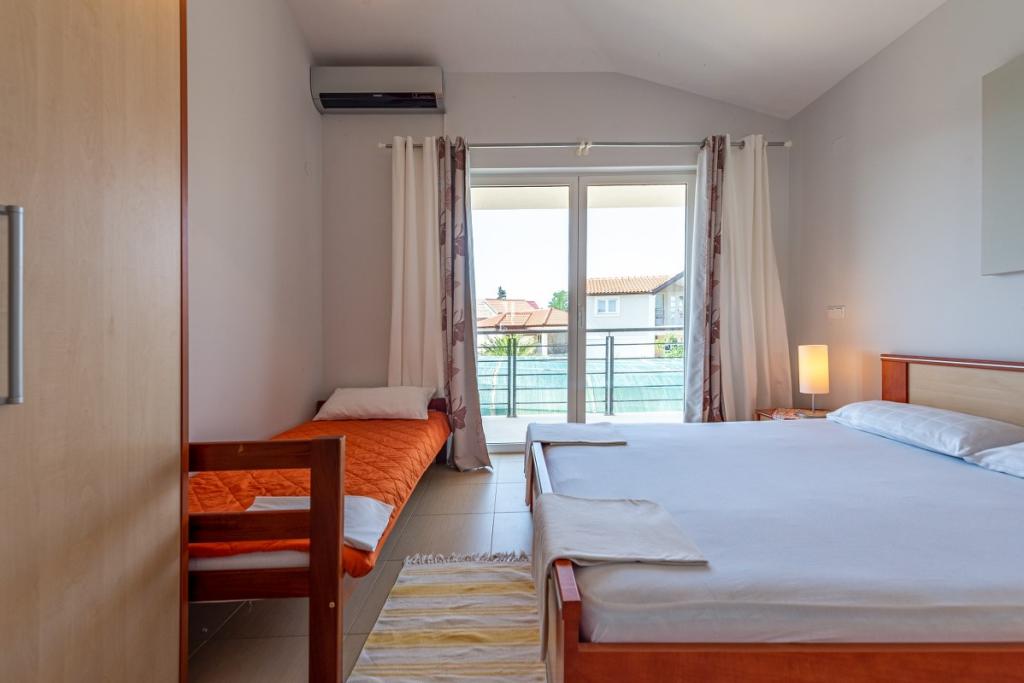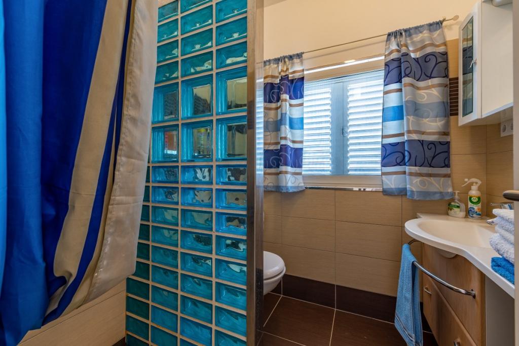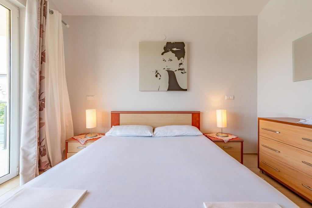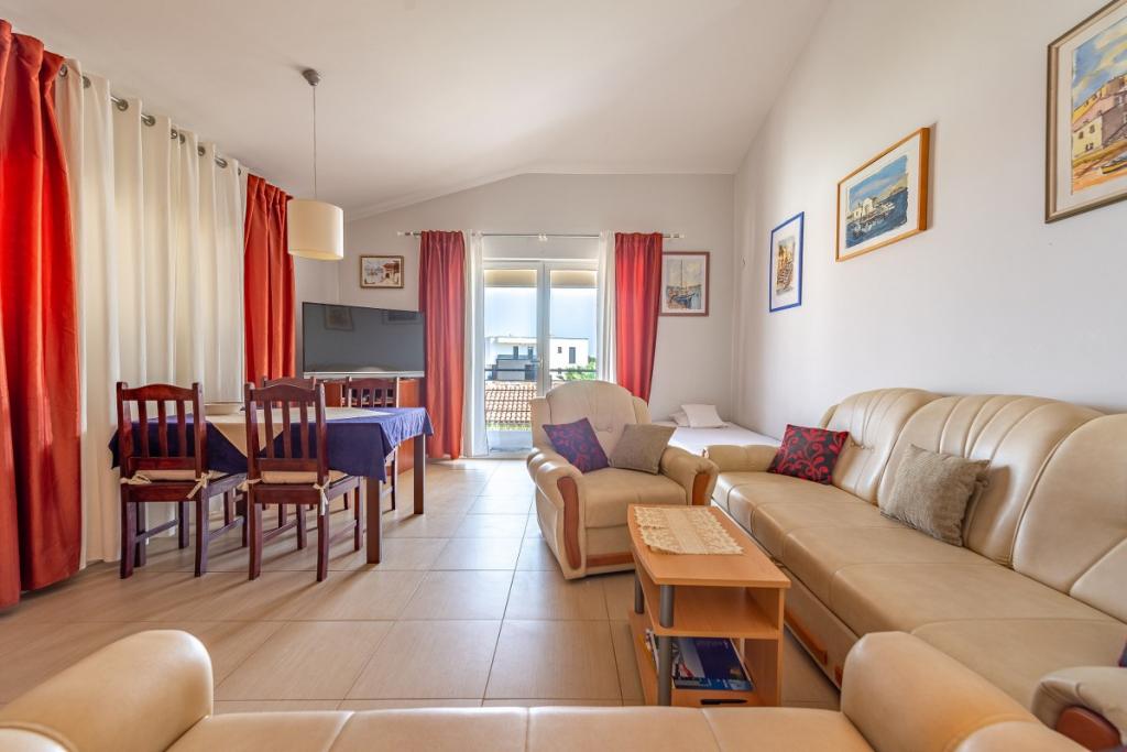 Apartmani se nalaze na I katu kuće za odmor, udaljeni cca 180 m od plaže Jadro i centra Vira. Plaža Jadro najpoznatija plaža na Viru. Apartmani su prostrani sa jednom spavaćom sobom koja ima francuski krevet i još jedan dodatni ležaj. i dnevnim boravkom koji ima ležaj na razvlačenja. Vlasnik prima 2 odrasle osobe sa dvoje djece, ili pak 3 odrasle osobe i 1 dijete. Ima 2 terase.Terase su okrenute prema moru, druga terasa na sjevernoj strani.Apartmani imaju klime, tv, sat, wifi. Parking je ispred apartmana. Preko agencije Vir turizam organizirani su izleti na Kornate, Nacionalne parkove Krka, Paklenica, Plitvice. Najam bicikala, glisera i brodica. Škola ronjenja. Bazen se može koristiti samo od 01.06. - 30.06.