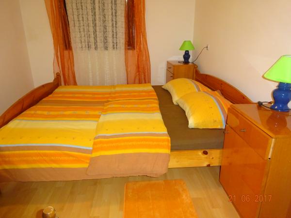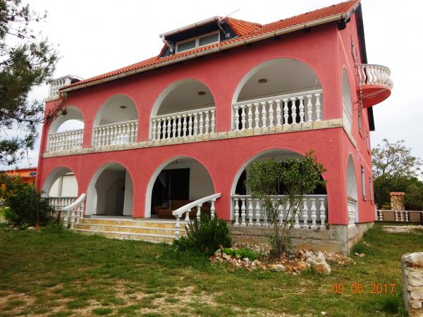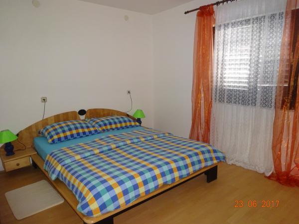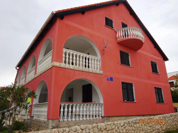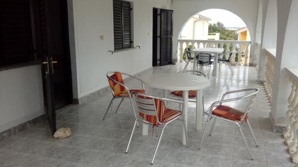 Dobro opremljeni apartmani veličine 40 i 45 m2. Apartmani se nalaze u obiteljskoj kući na 1. katu. Dva apartmana dijele zajedničku veliku natkrivenu terasu, svakome apartmanu pripada dio terase od cca 16 m2. Apartmani imaju spavuću sobu, dnevnu sobu, kuhinju i kupaonicu. U dvorištu ima dovoljno mjesta za parkiranje 6 automobila. mogućnost korištenja mobilnog roštilja, peke i kotlića. Udaljenost do najbliže plaže je 5 min. hoda. Plaža je šljunkovita sa pristupačnim ulazom za djec, te prirodnim hladom ( borova šumica uz obalu. miran dio otoka, udaljenost od centra cca 2000 m.