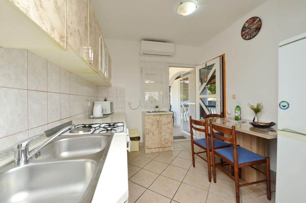 Kompletno uređeni apartmani na mirnom dijelu otoka, 100-150m od mora, fast fooda i kafića na plaži. Mogućnost korištenja roštilja. Svi apartmani imaju terasu. Lokacija je posebno zanimljiva obiteljima s djecom jer nema noćnog života, štandova i gužve. Na plaži cijelo ljeto postoji Ledo škrinja sa sladoledom, te mogućnost kupnje kuhanog kukuruza.