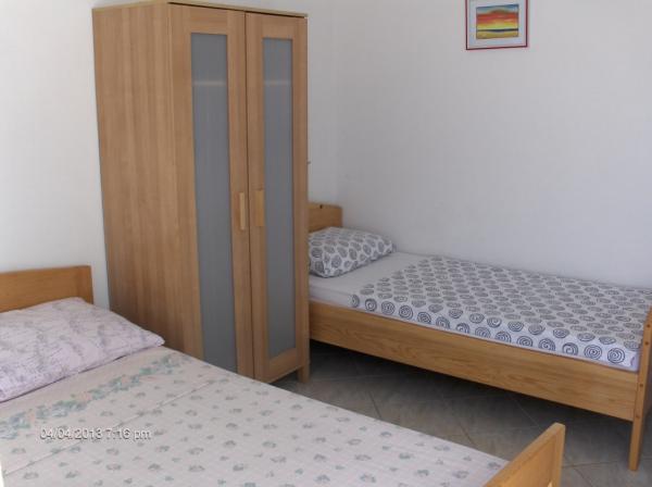 Iznajmljujem dva apartmana na Viru otoku koji je mostom povezan s kopnom, a od Zadra je udaljen oko 25 km. Apartmani se nalaze na katu privatne kuće. Svaki apartman ima po jednu odvojenu spavaću sobu s bračnim krevetom i jednim odvojenim krevetom (mogućnost dječjeg krevetića), kupaonicu, dnevni boravak s krevetom na razvlačenje, stol i stolce, TV SAT i klima uređaj. Kuhinja je opremljena, a kuhanje je na struju. Apartmani imaju odvojene ulaze i terase. U svakom apartmanu može boraviti 4-5 osoba.