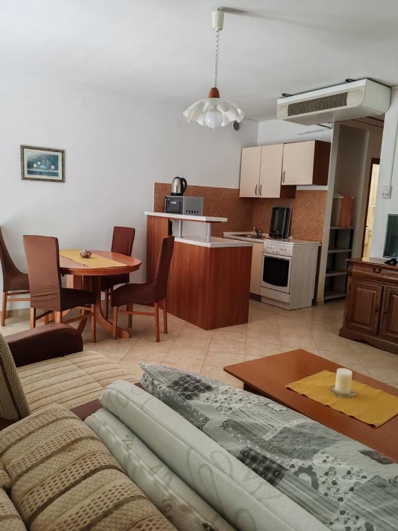 U ponudi imamo 6 kvalitetno opremljenih apartmana. Kuća u kojoj se nalaze apartmani prva je do mora i svega 25 m dijeli vas od plaže. U blizini objekta nalazi se i plaža s pijeskom u moru, idealno za obitelji s djecom.