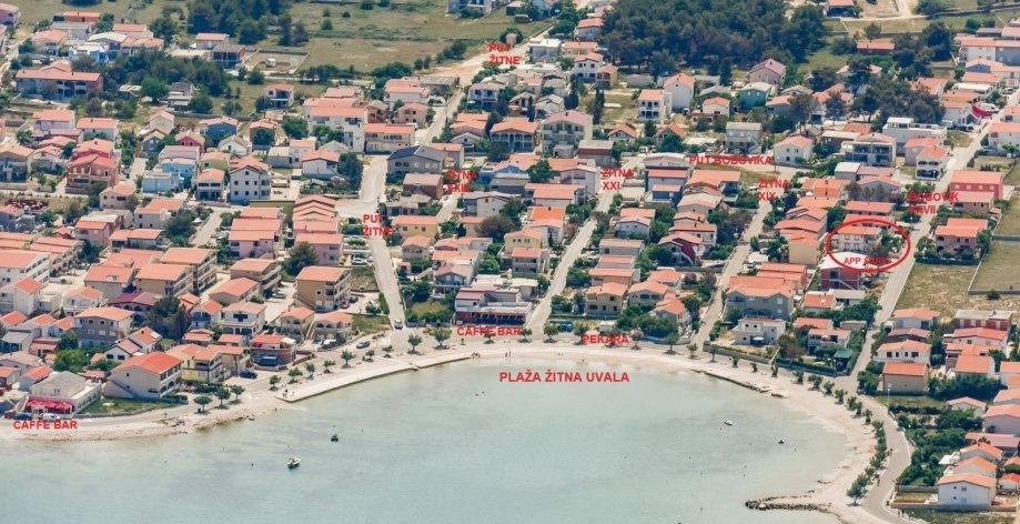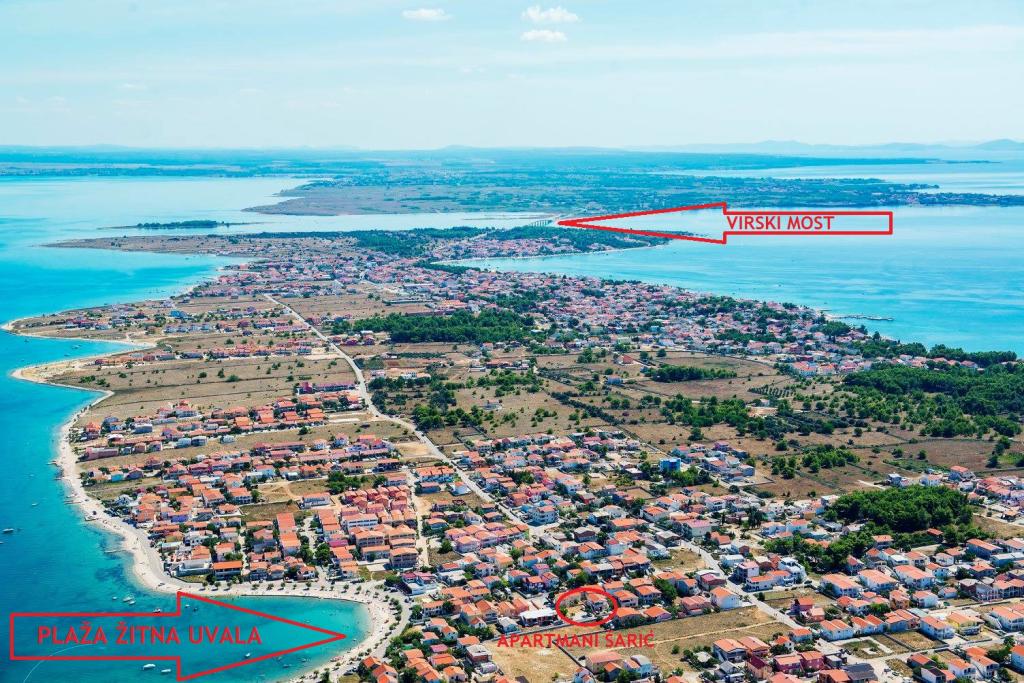 U kući se nalaze tri apartmana. Dva imaju po dvije spavaće sobe, boravak, kuhinju, kupaonicu i veliku natkrivenu terasu. U svakom je jedna soba s francuskim ležajem, a u drugoj su sobi dva odvojena kreveta. U trećem je apartmanu jedna spavaća soba s francuskim ležajem, kuhinjom, kupaonicom i također velikom natkrivenom terasom. U svim sobama je posteljina. U kuhinjama je suđe za kuhanje i serviranje hrane te mikrovalna pećnica i kuhalo za vodu. U svakom apartmanu je i klima koja je uključena u cijenu. Svi apartmani imaju poseban ulaz. U sklopu kuće nalazi se parkiralište koje je dostupno za sve goste. Može se koristiti i roštilj. Plaža Žitna uvala udaljena je 80m. Plaža je šljunčana, a u moru je pijesak. Uz plažu se nalazi šetnica i biciklistička staza te više kafića, restorana, slastičarnica i pekara. U krugu 100m ima nekoliko trgovina. Centar Vira udaljen je 1800m.