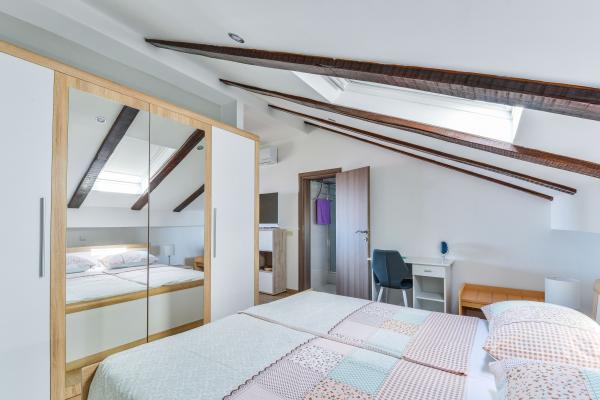Prvi put smo bili na Viru i imali sreću biti gosti Janje i Željka. Ne samo smještaj, nego i njih dvoje postali su divni dragi prijatelji tijekom ovog vremena. Nisu štedjeli, odvezli su nas u bolnicu gdje nam je trebala pomoć i proveli pola noći u kolima hitne pomoći. Hvala vam puno na tome. Sutradan su htjeli s nama u polikliniku. Srećom to nije bilo potrebno. Janja i Željko su divni domaćini. Apartman je vrlo čist, velik i ima sve što je potrebno za odličan odmor. Apartman je vrlo moderan i potpuno opremljen. Svaka spavaća soba ima kupaonicu s tušem, što je bilo od velike pomoći s tri žene. U svakoj sobi nalazi se klima uređaj koji je tih i lijepo hladi. Kuhinja je potpuno opremljena, a tu su i stvari koje rijetko koristite, a ne morate ih dodatno kupovati. Kao što su ulje, brašno ili deterdžent za perilicu posuđa. Na velikoj terasi s velikim stolom i udobnim stolicama možete doručkovati ili večerati. (imali smo samo doručak i večeru). Kao iu prošloj recenziji Petera i Jana, koji su jako dobro opisali apartman i prostor, možemo samo potvrditi. Prekrasno more je vrlo blizu, a također i sve što vam je potrebno za ugodan odmor je vrlo blizu. Možete parkirati direktno na posjedu, a pored parkirnih mjesta nalazi se vanjski tuš koji možete koristiti. Sigurno ćemo se vratiti sljedeće godine.