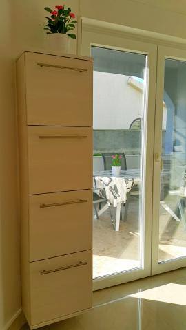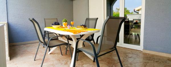 Stan je lijep, ukusno namješten, moderan, prostran s velikom terasom, njegova čistoća je velika. Domaćini su mladi, uslužni i dobroćudni ljudi. Plaža je vrlo blizu samo 3 minute, tako da tko se želi opustiti ne mora ni koristiti svoj automobil. Bili smo jako zadovoljni i možemo ga samo preporučiti svima.