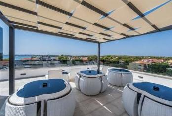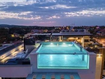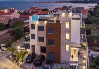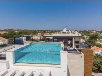 Kompletno uređeni i luksuzno namješteni apartmani nalaze se u samom centru otoka Vira udaljeno 50 m od plaže. Naše vile nam omogućuju pravi doživljaj luksuza uz jacuzzije i bazen na krovu zgrade u staklu. Uz dodatne sadržaje imamo električne skutere za najam te bicikle. Također, korištenje krovne terase, roštiljanje i odmaranje uz prekrasan panorama pogled na cijeli otok omogućeno je svim gostima.