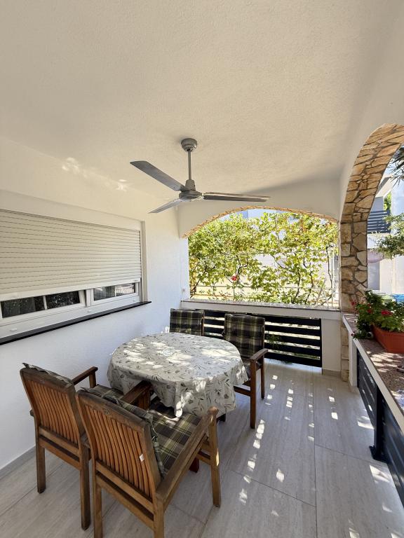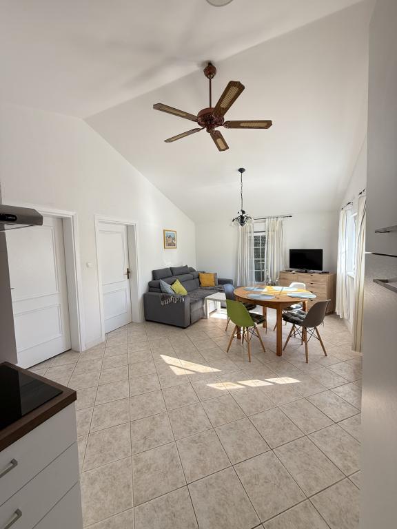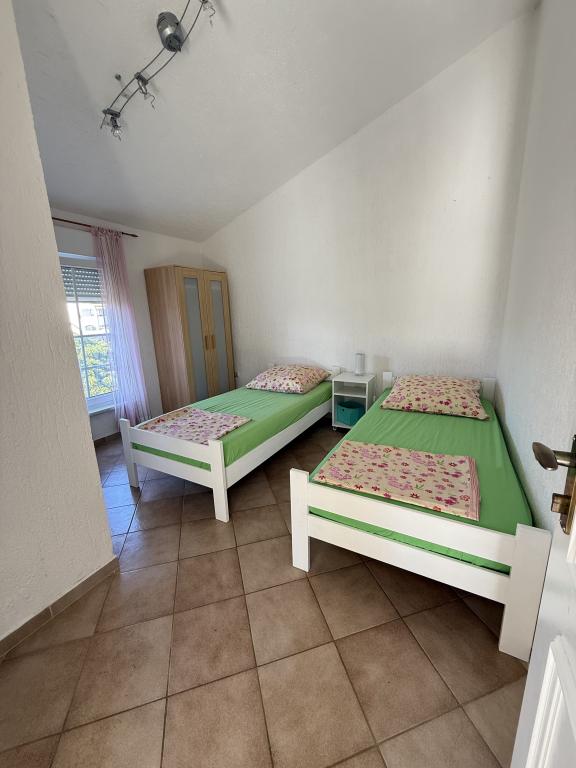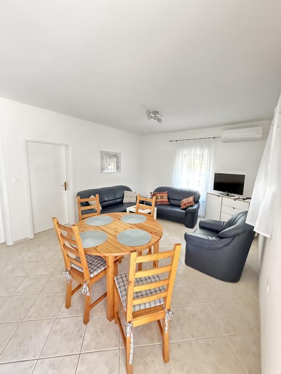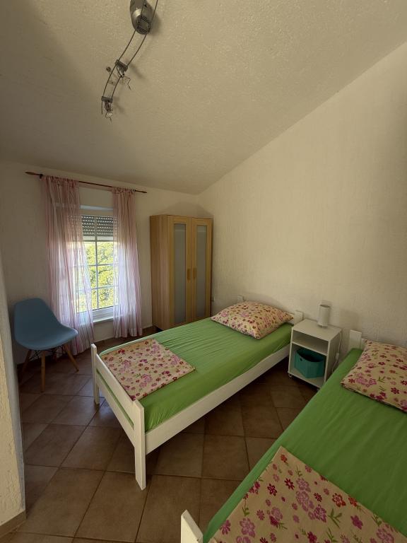 Na otoku Viru, svega 150 metara od mora, nalaze se dva apartmana kapaciteta do 5 osoba. Apartmani su moderno opremljeni, klimatizirani i prilagođeni udobnom boravku. Svaki apartman ima vlastitu terasu s prostorom za sjedenje, a u ograđenom dvorištu gostima su na raspolaganju privatni parking i grill. Blizina mora i plaže, zajedno s praktičnim sadržajima, čine ove apartmane pogodnim izborom za obitelji i manje grupe prijatelja koji traže smještaj u neposrednoj blizini svih glavnih sadržaja. Apartmani su pogodani za smještaj do 5 osoba. Sastoje se od dvije spavaće sobe, u apartmanima se nalazi kupaonica s tušem i perilicom rublja, te kompletno opremljena kuhinja povezana s dnevnim boravkom. Za opuštanje i boravak na otvorenom tu je i terasa s prostorom za sjedenje. Apartmani su klimatizirani i moderno uređeni, idealani za obiteljski odmor ili boravak u manjoj grupi prijatelja.