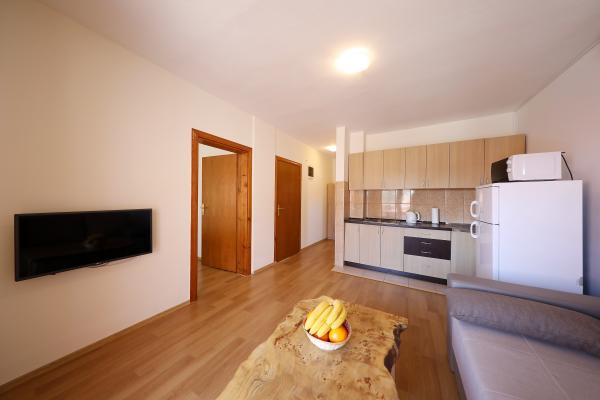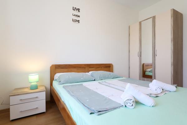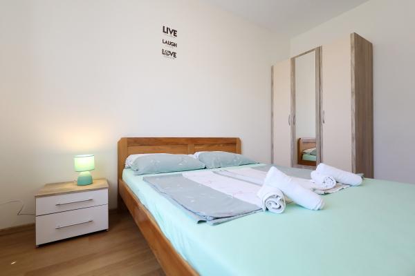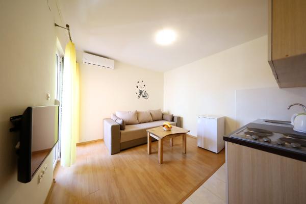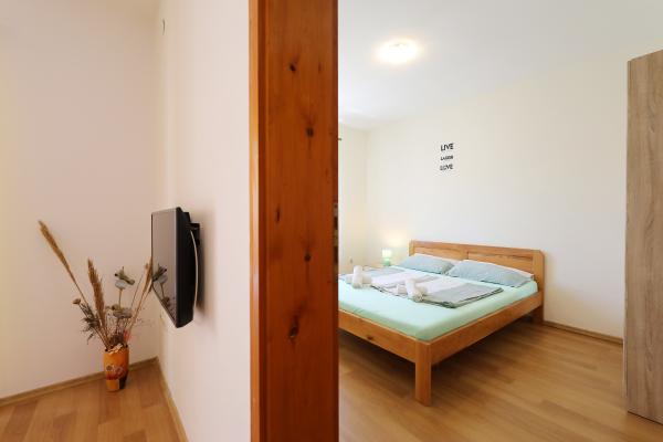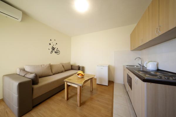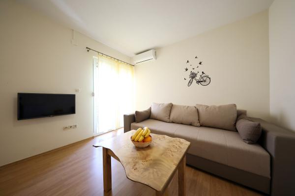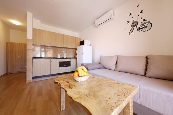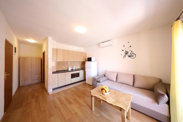Apartmani se nalaze 100m od plaze, 10min hoda do trgovine, plaza jhe pogodna za roditelje sa malom djecom. Apartmani su suvremeno i kompletno opremljeni i klimatizirani.