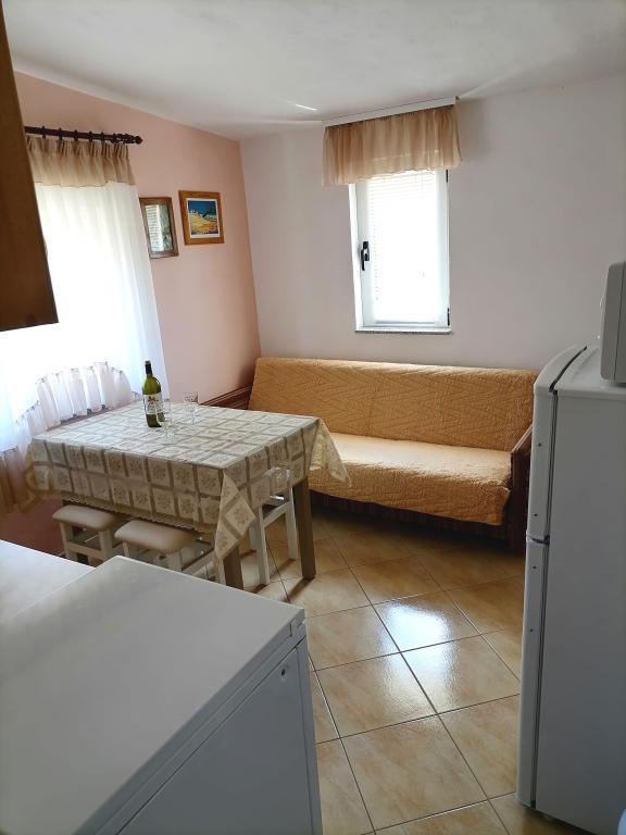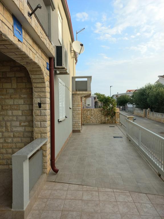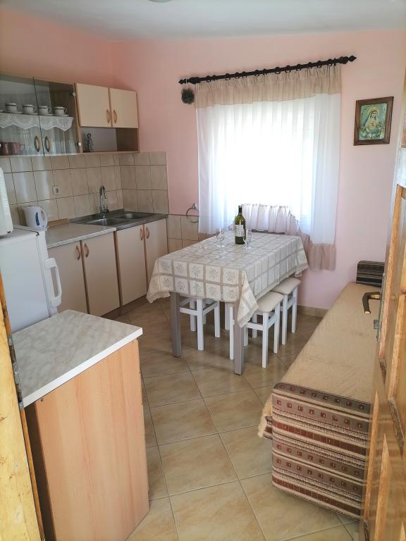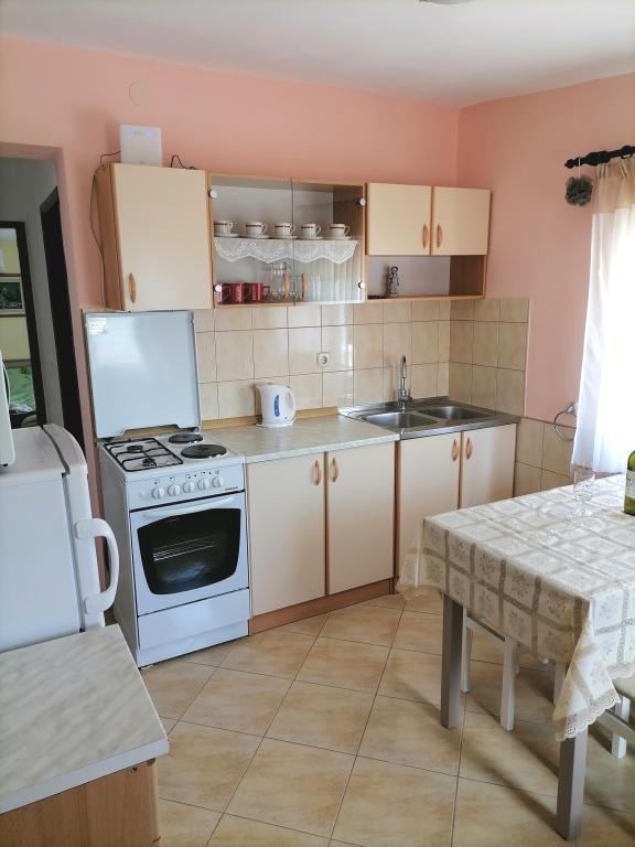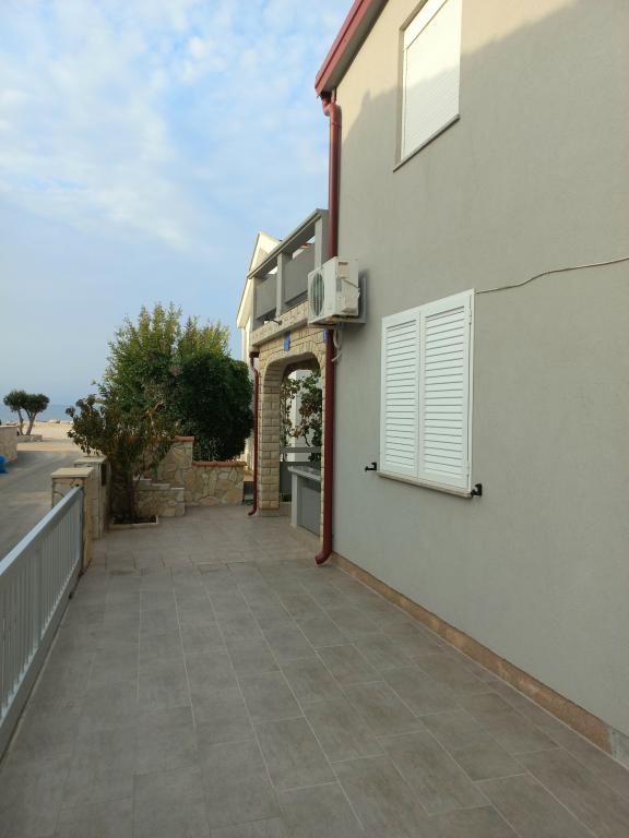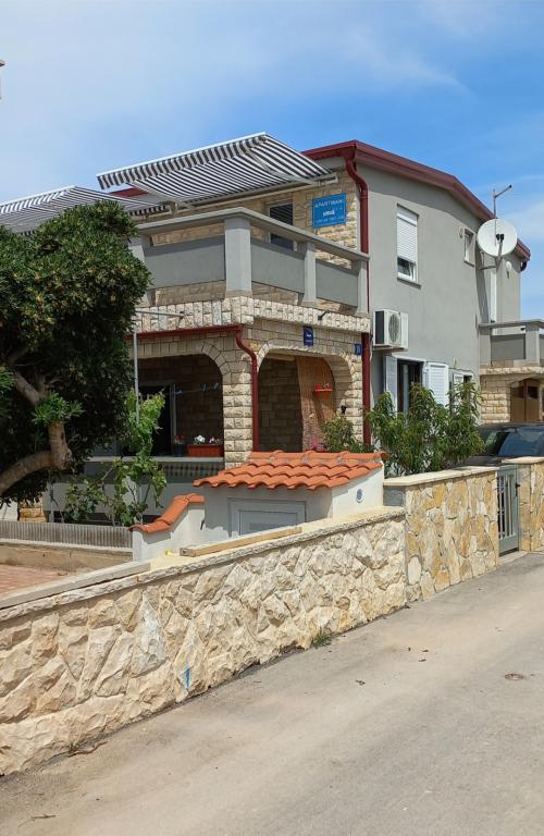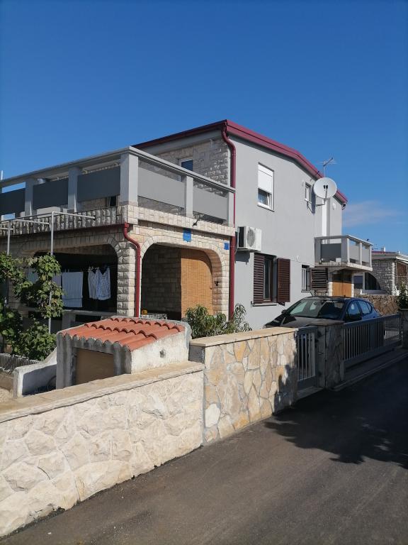 Apartmani se nalaze na katu kuće. Sa velikom terasom i pogledom na more. Smješteni su u mirnom predjelu. Drugi red do mora, udaljenost od plaže i mora 20m. Parking se nalazi u dvorištu kuće, te je namijenjen samo za manja vozila. Veća vozila parkiraju se na obali. Gostima je na raspolaganju roštilj, klima, tv, sat-tv, wi-fi.