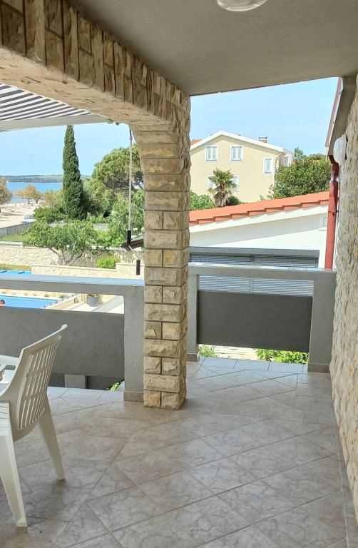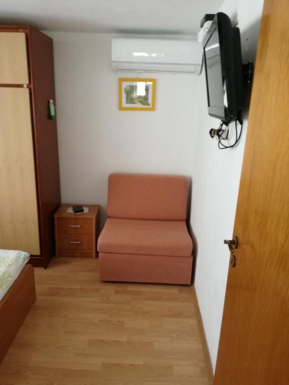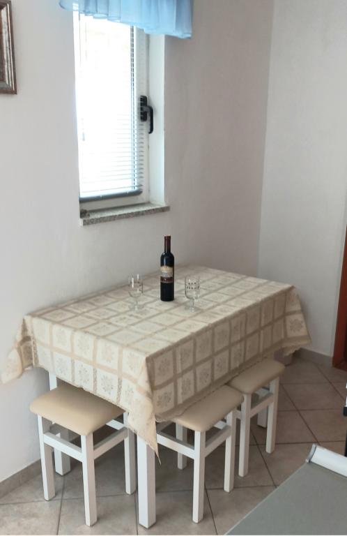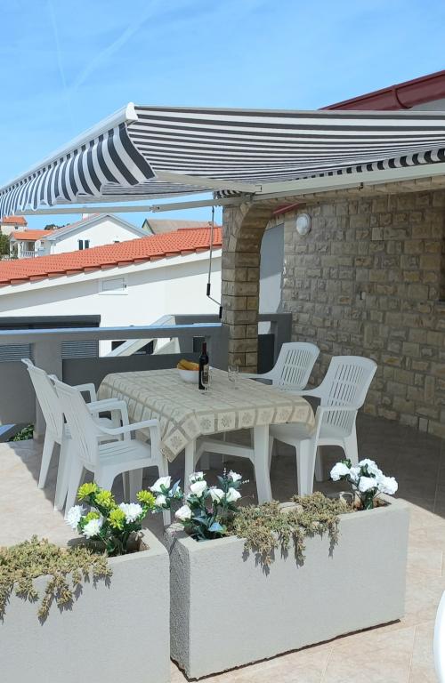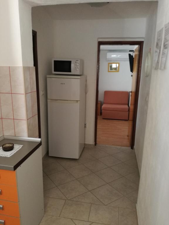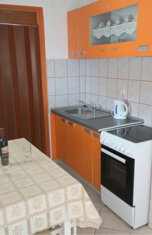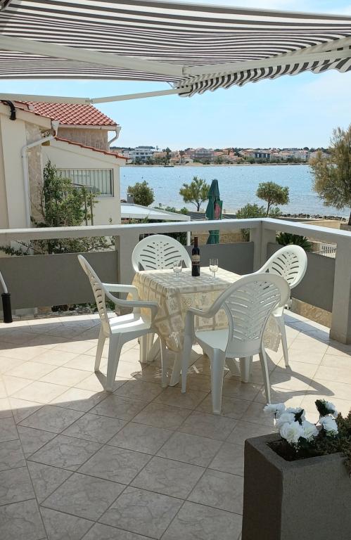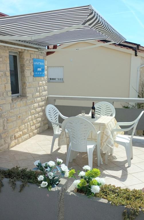 Apartmani se nalaze na katu kuće. Sa velikom terasom i pogledom na more. Smješteni su u mirnom predjelu. Drugi red do mora, udaljenost od plaže i mora 20m. Parking se nalazi u dvorištu kuće, te je namijenjen samo za manja vozila. Veća vozila parkiraju se na obali. Gostima je na raspolaganju roštilj, klima, tv, sat-tv, wi-fi.