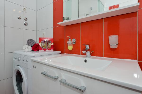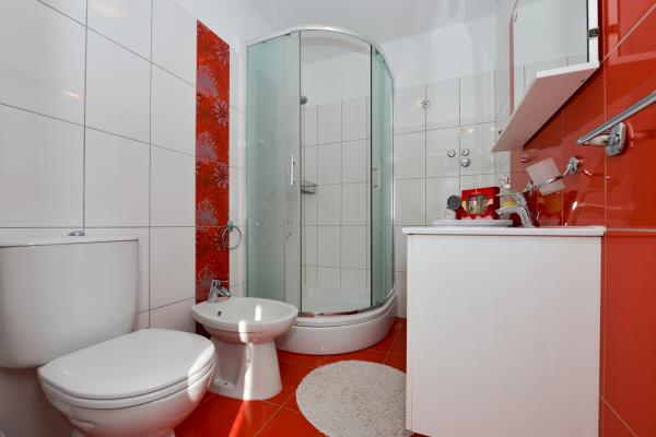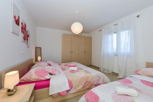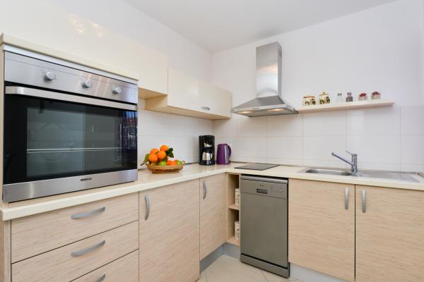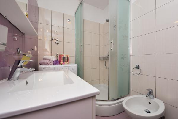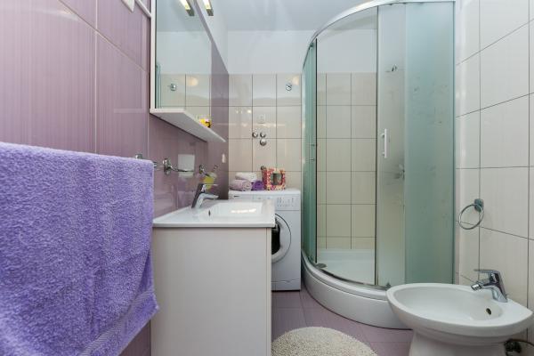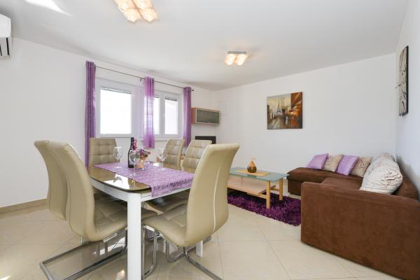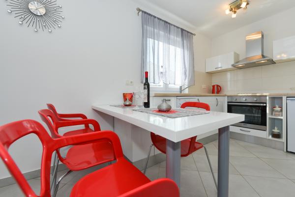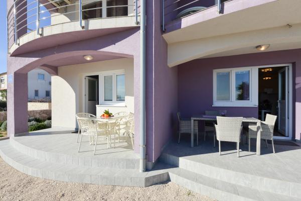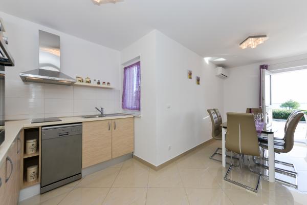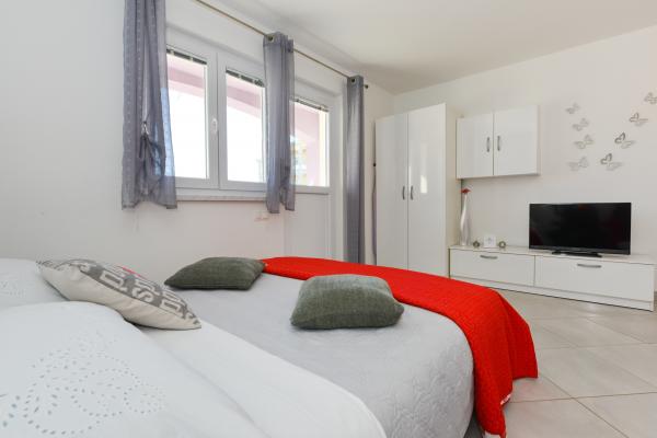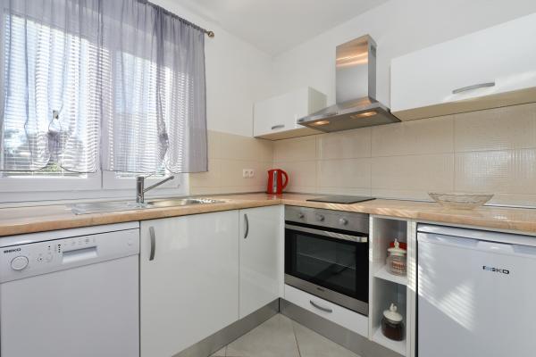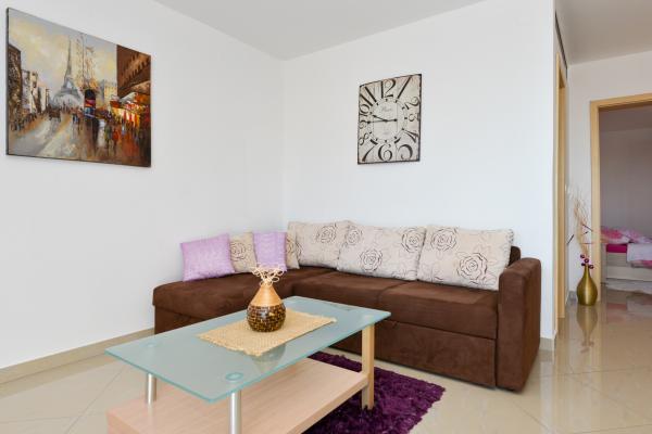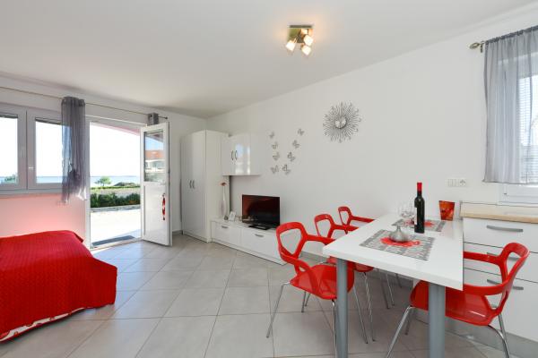 Prekrasan čist novi apartman s pogledom na more. Vrlo lijep vlasnik. Po dolasku popili smo ohlađeno pivo i sok. Mirna lokacija, blizina plaže - oko 50m. Vrlo malo ljudi na plaži. Šljunčana plaža s pijeskom u moru. Voda je vrlo čista. Na plaži nije bilo kanti za smeće, što se odražavalo na labavom smeću na ulazu u plažu. Nedaleko od ove plaže nalazi se jezgra plaže (bila je vrlo gužva, bučna), a u blizini je kafića, tržnica i atrakcije (vodeni bicikli, dvostruki dvorci, polupodmornica, skuteri itd.) Trgovina i pekara oko 600 m od smještaja. Ako kupujete staklene boce, morate držati blok jer ih inače neće vratiti.