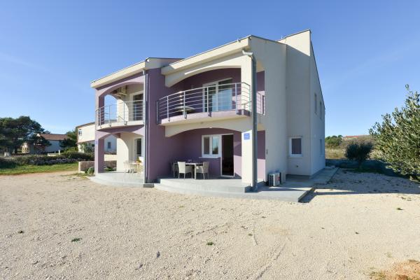 Modreno opremljeni apartmani u mirnom djelu otoka Vira, smjesteni svega 300 metara od centra, 70 metara do mora i do sljuncano pjescane plaze. . apartmani su opremljeni svim aparatima poput preilice rublja i suđa mikeovalne i sl. , na terasi je stolna garnitura.
