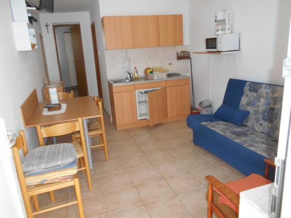 Apartman je opremljen : ..... dnevni boravak,spavaća soba,kupaonica-tuš kuhinja-kompet,klima,,tv,parking,vrtni tuš,gril u kamenoj kući,natkrivena veranda cca.12 m2. (((+ 50 metara do plaže-mora,mirni dio naselja-pogodno za djecu + )))