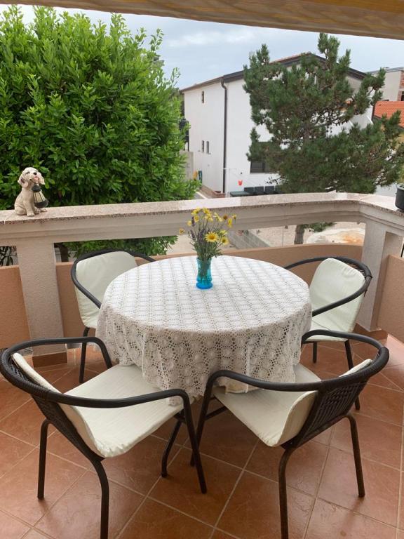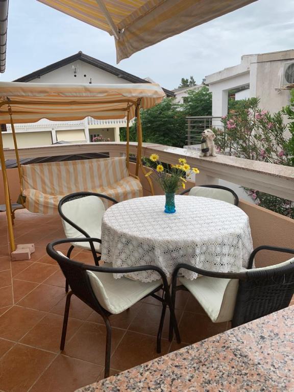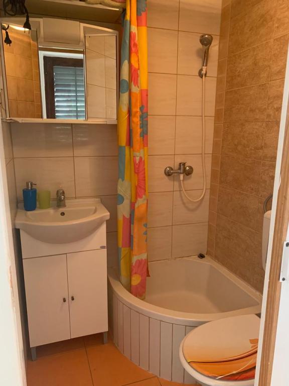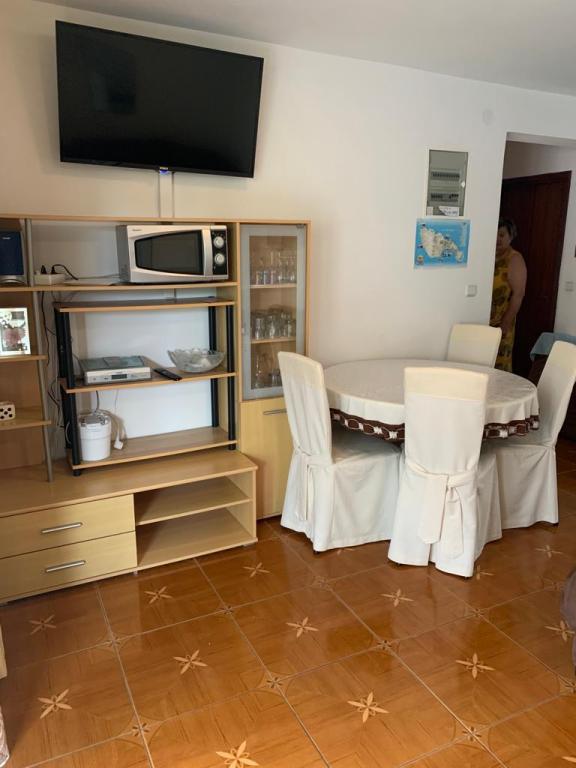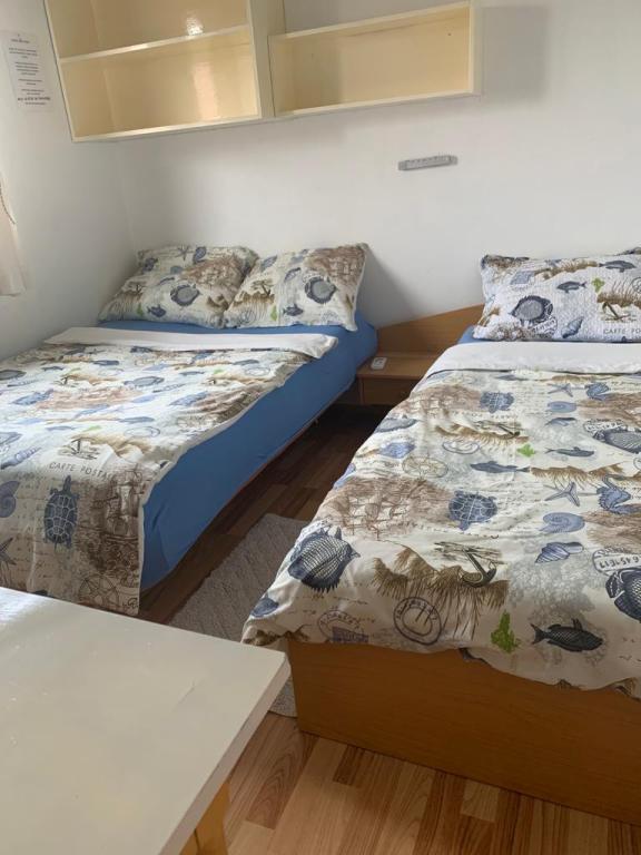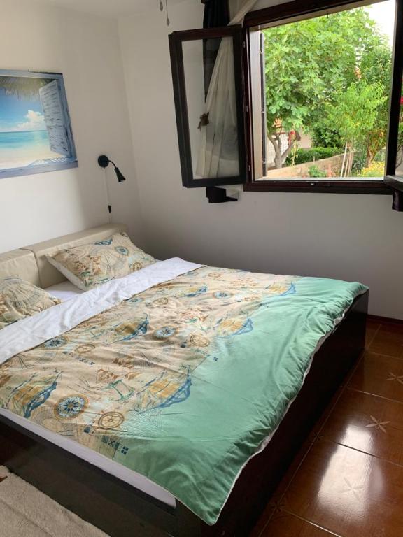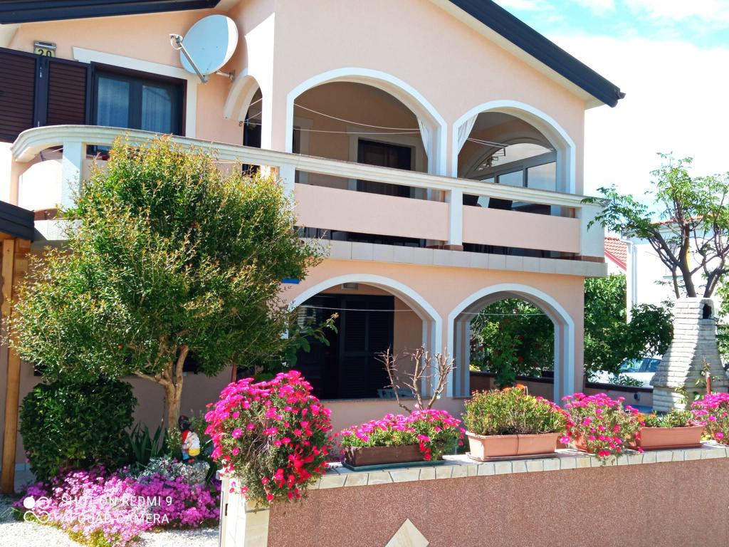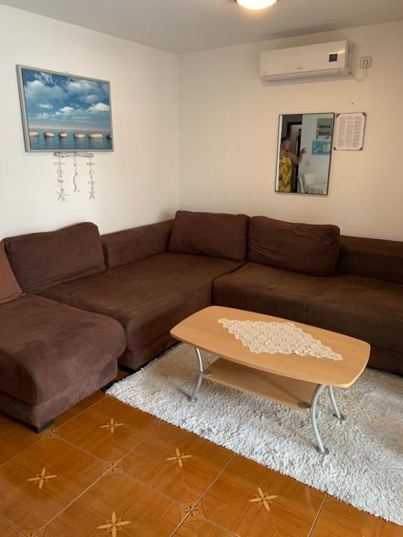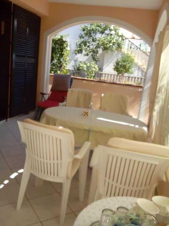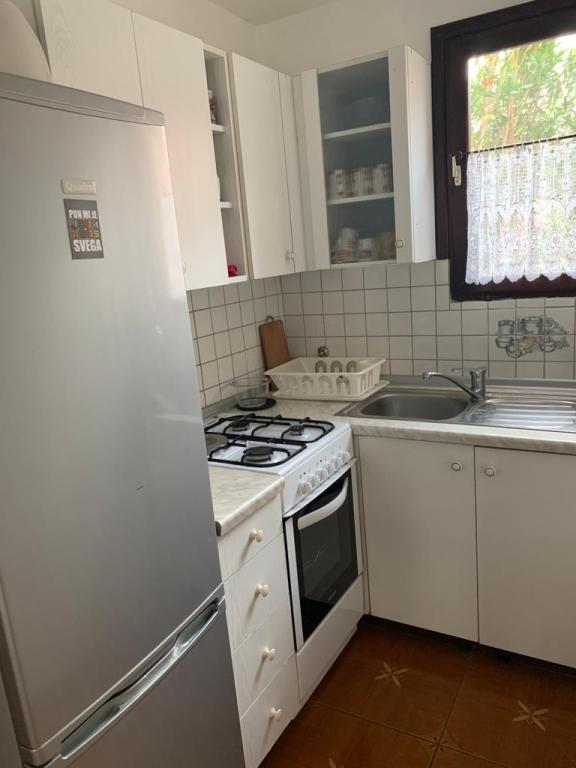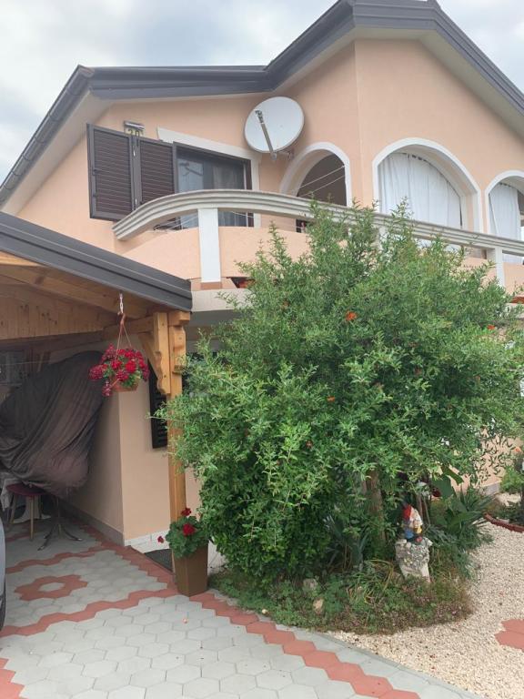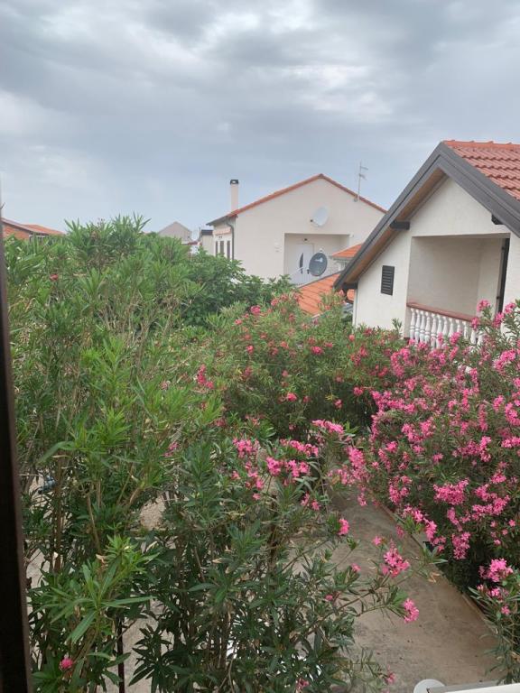 Apartmani se nalaze u mirnoj ulici okruženi zelenilom tako da Vam je opuštajući odmor zagarantiran.U blizini nalaze se pekara,trgovine,kafići,restorani,ljekarna,slastičarne,dvije plaže.Udaljenost od centra je 10minuta hoda.Apartmani su opremljeni sa svim sadržajem koji je označen u oglasu.