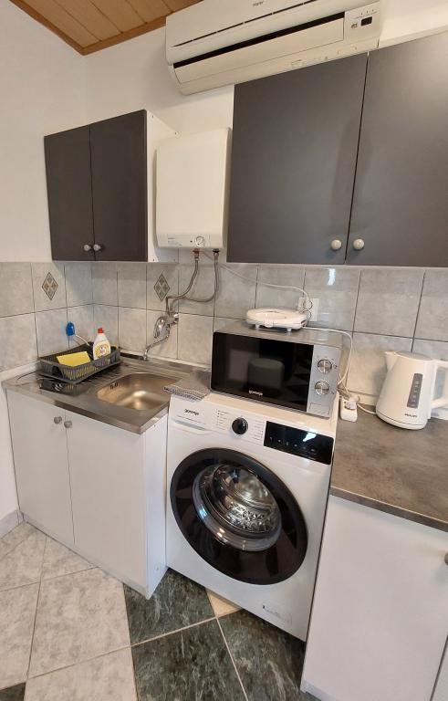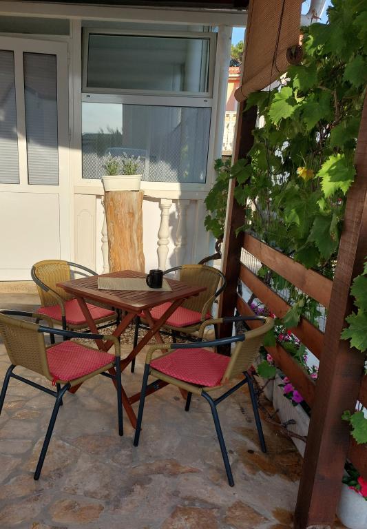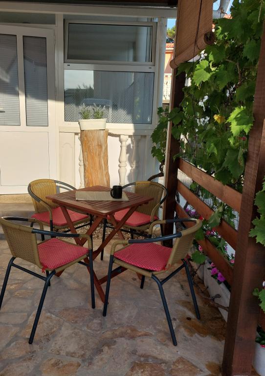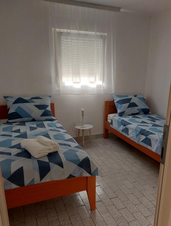 Dva dvosobna apartmana, jedan u prizemlju a drugi na katu nalaze se u jednoj kući. Kuća je u blizini plaže Luka, udaljene cca 100 metara, do koje se dolazi asfaltiranom ulicom. Trgovina je također vrlo blizu cca 100 metara. Kuća je spojena na gradski vodovod i kanalizaciju. Svaki apartman ima dvije spavaće sobe, jedna soba ima bračni krevet a druga dva odvojena kreveta. Svaki apartman ima terasu, perilicu suđa. Parkirna mjesta su ispred kuće.