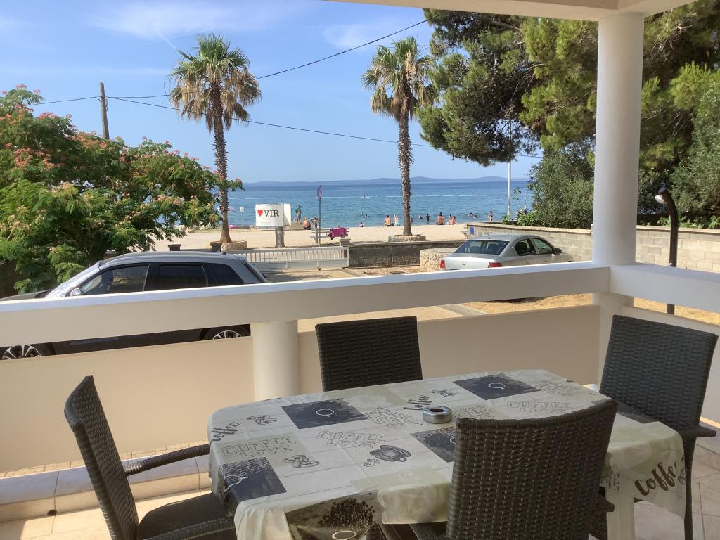 Kompletno i savremeno opremljeni apartmani nalaze se na juznom djelu otoka Vira, mirnom i preljepom djelu ovog krasnog otoka. Objekt se nalazi na prvom redu do mora, tako kad ustanete samo trebate obuci kupaci kostim i zaplivati u cistom i bistrom moru, bez brige o voznji i prtljazi!!! Aparmmani se nalaze u prizemlju i svaki ima parking za jedno ili vise osobnih vozilia. Svaki apartman ima vlastiti zasebni ulaz i spektakularni pogled iz posebno velikog balkona na plazu i otoke sa druge strane Vira. Besplatni Wi FI stoji vam na raspolaganju cijelo vrijeme, kao i veliki plinski rostilj. Trebate samo nekoliko minuta hodanja da bi stigli do restorana i ducana, a do centra mjesta petnajestak minuta setnjom uz more. U samom centru tokom cijele sezone ima puno zabave za odrasle i djecu, kao i restorana i ducana na svakom karaku, tako da ako jednom dodete na Vir, sigurno ce te se vratiti opet.