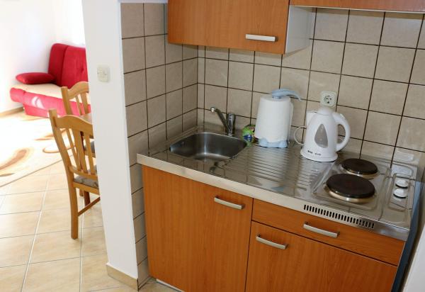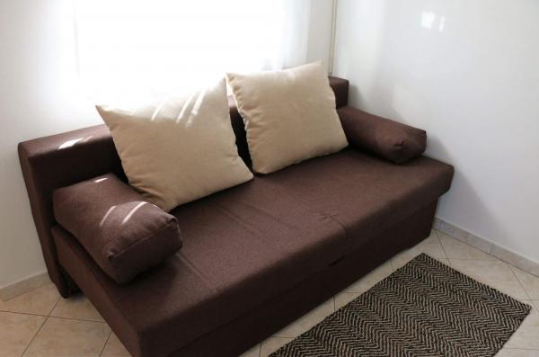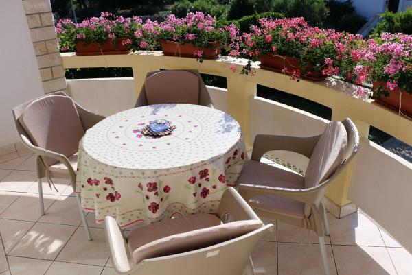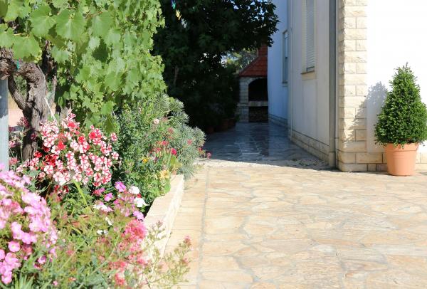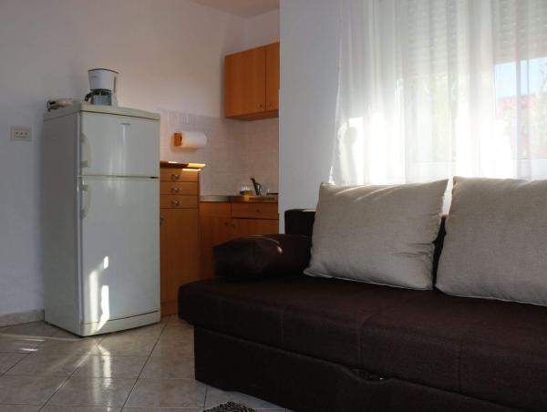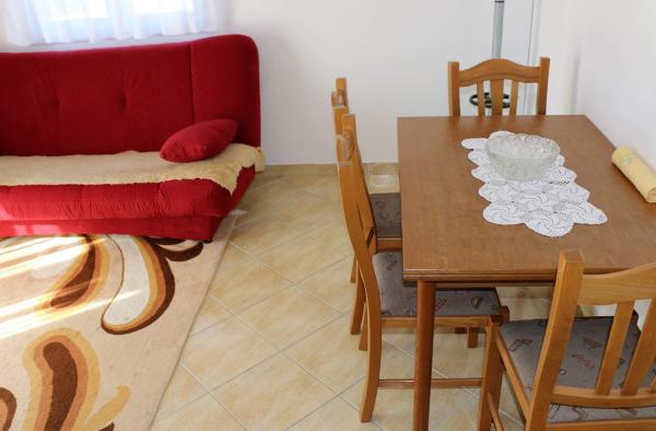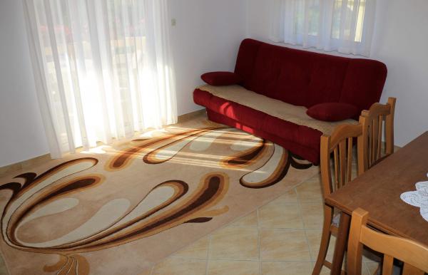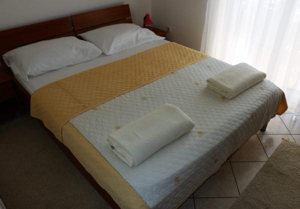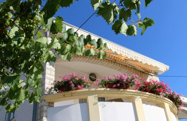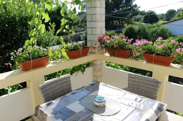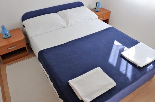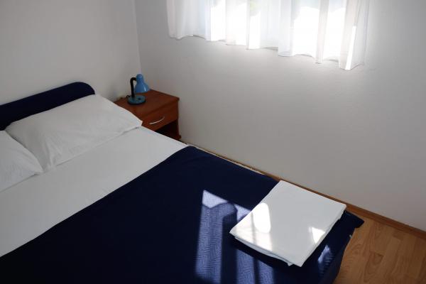Lijepo uređeni apartmani za 2-4 osobe površine 50m2 i 40m2 na prvom katu kuće sastoje se od dnevnog boravka, blagovaonice i kuhinje, dvokrevetne spavaće sobe sa bračnim krevetom i kupaonice sa tušem. U dnevnom boravku nalazi se kauč na razvlačenje za dvije osobe. Iz dnevnog boravka izlazi se na natkriveni i namješteni balkon površine 9m2. Klima uređaj, satelitska televizija, dječji krevetić, privatan ulaz, parking na posjedu i roštilj samo su neke od mogućnosti koje su na raspolaganju gostima. Prekrasna glavna plaža Jadro koja nudi puno sadržaja za djecu i odrasle nalazi se na 200 m od apartmana. Centar otoka Vira i restorani nalaze na 200 m udaljenosti, dok se trgovina nalazi na samo 80 m udaljenosti.