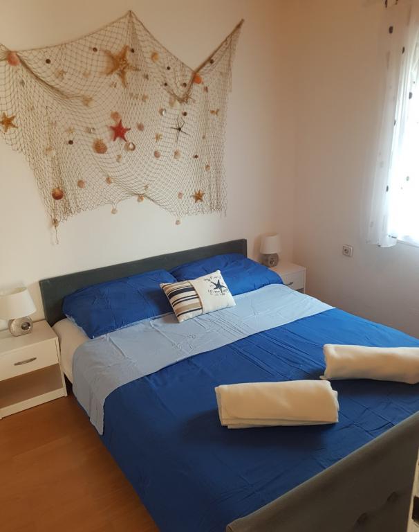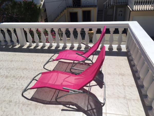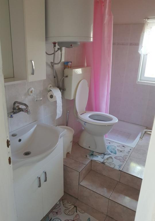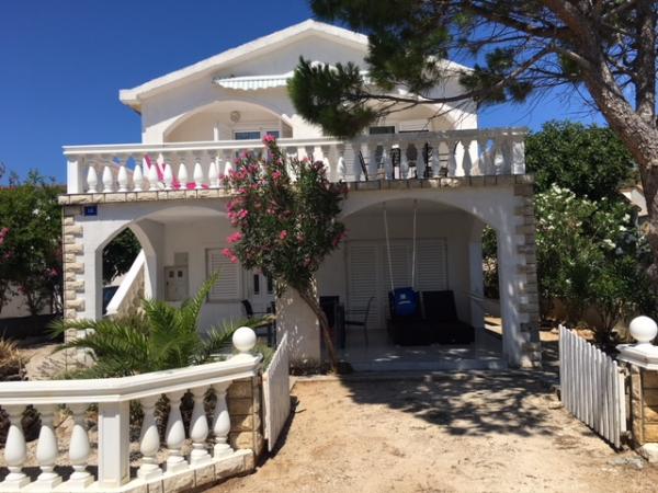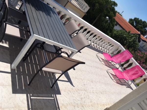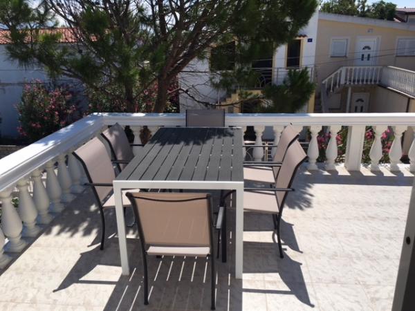 Veliki trosobni apartman 56 m2 30 m2 terasa preko čitave kuće. Pogodan je za 1 veću ili 2 manje obitelji. Nalazi se 80 metara od glave plaže \žitna uvala\. Ulica je mirna, svi sadržaji su u blizini.