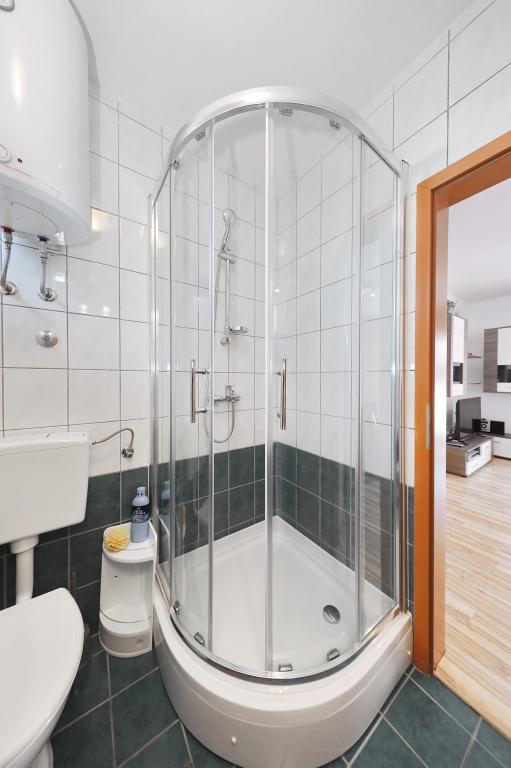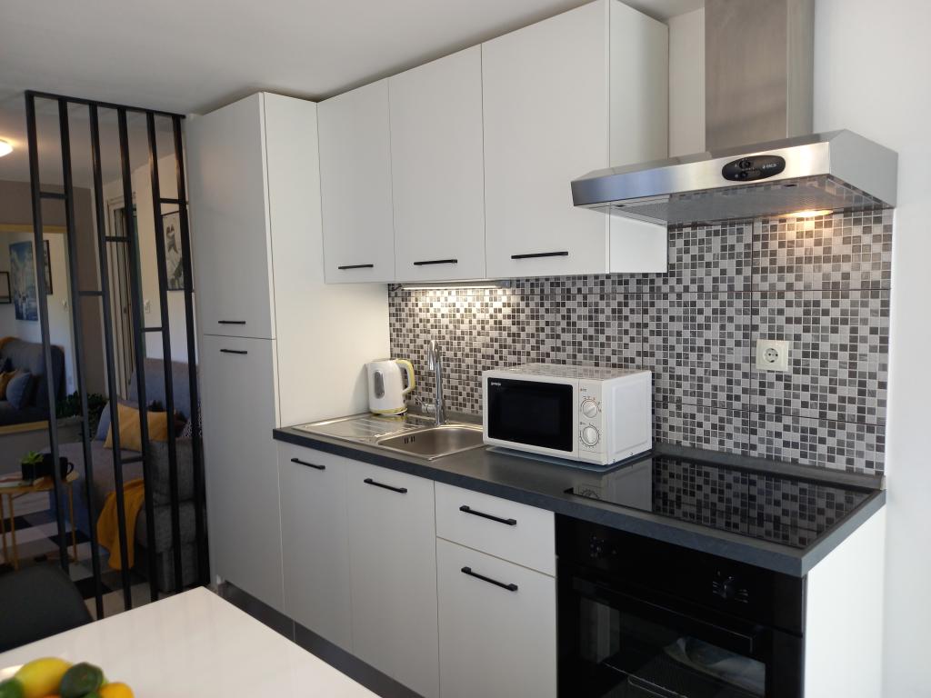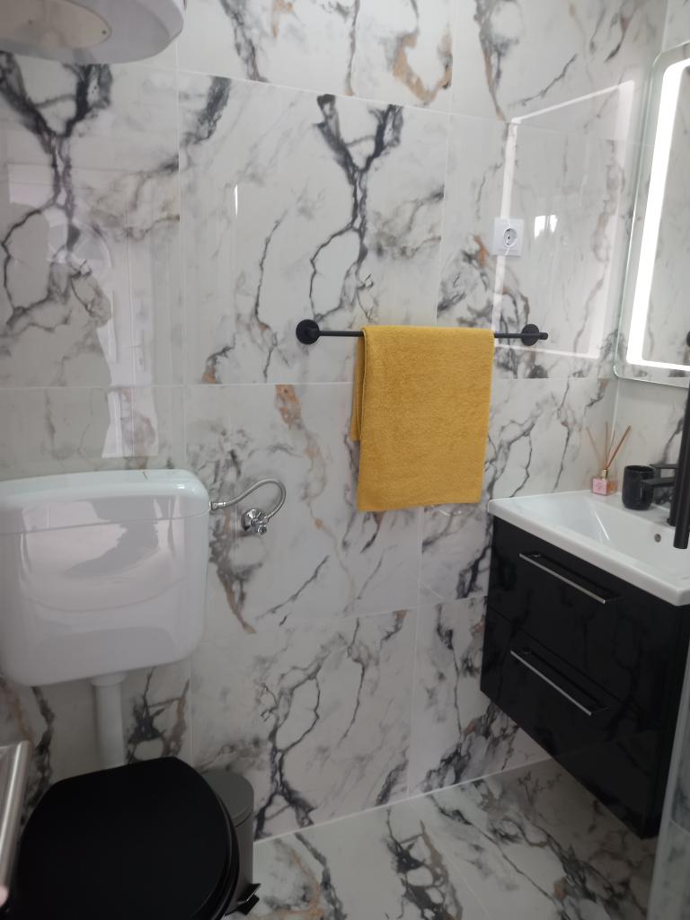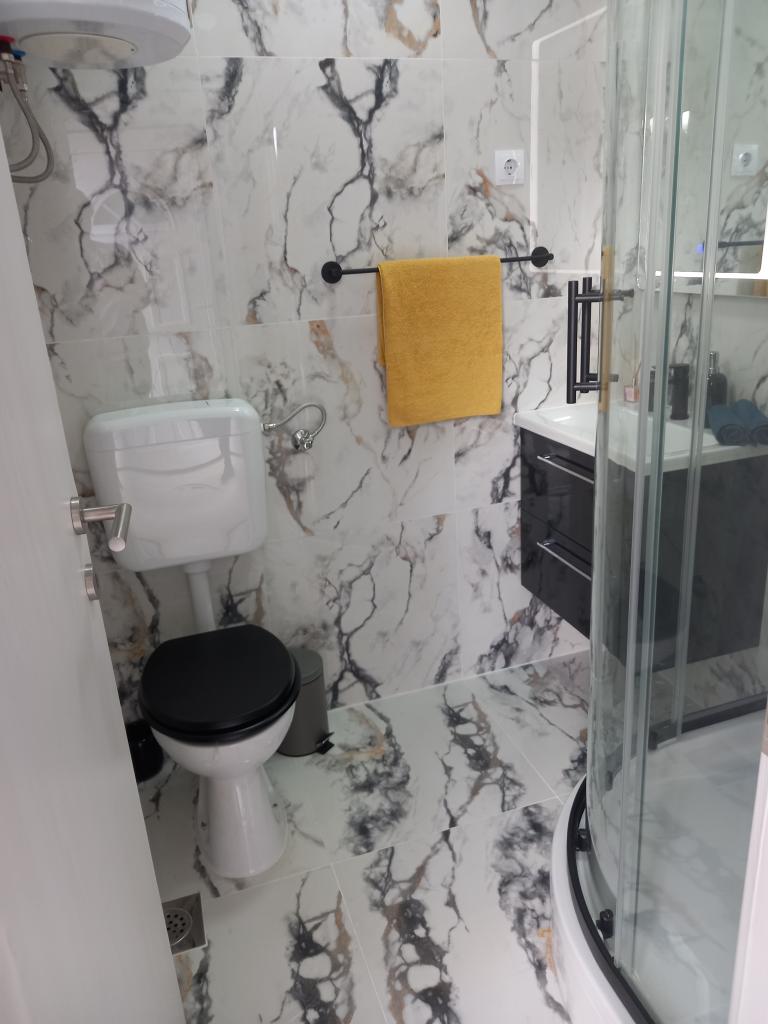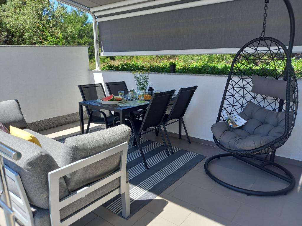 Apartman je vrlo uredan, moderan i čist. Imaju čak i dvije terase, tako da uvijek negdje ima hlada. Vlasnici su jako ljubazni, uvijek dostupni, po dolasku nas je dočekala ukusna dobrodošlica, uključujući i tople domaće kroasane. More je udaljeno minutu hoda, ali na plaži postoji i mol koji je odličan za mlade da skoče u vodu. Preporučam! Tjaša