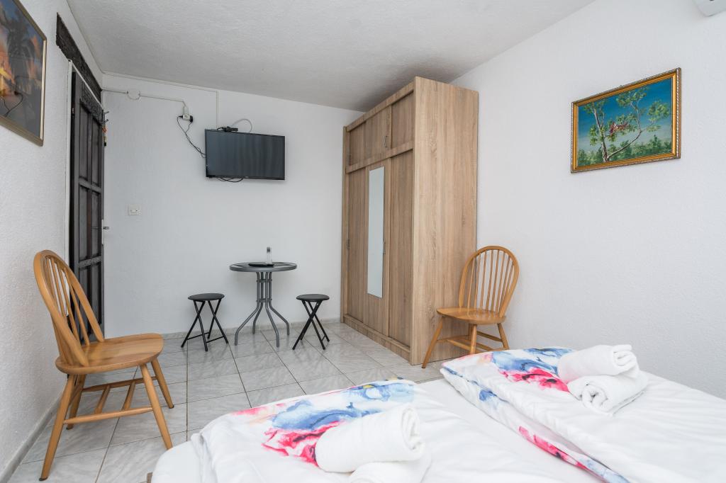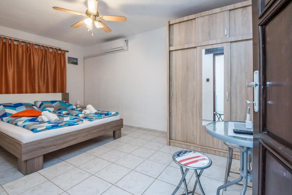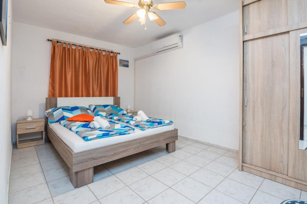 Kompletno opremljeni apartmani u mirnoj ulici smješteni 60 metara od plaže. Restorani,kafići i trgovina se nalaze u krugu od 5 minuta laganog hoda. Svaka soba klimatizirana. Apartmani se nalaze u prizemlju.