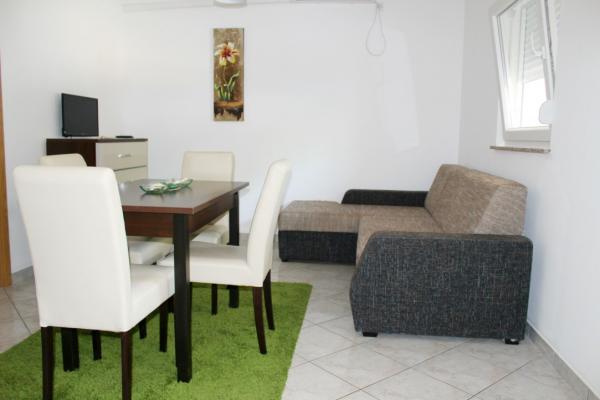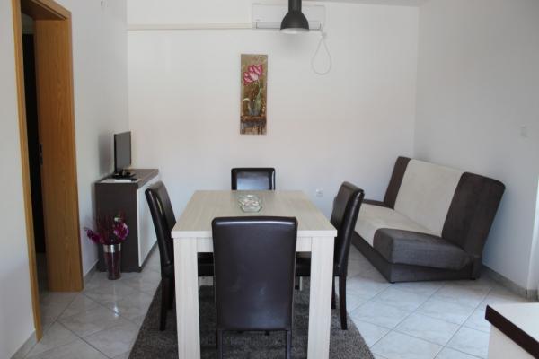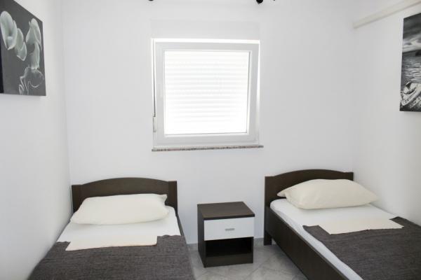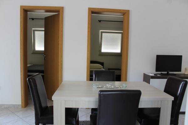 Prekrasno uređeni dvosobni apartmani na otoku Viru Apartman 4-6 osoba sastoji se od spavaće sobe sa bračnim krevetom, spavaće sobe sa dva odvojena kreveta, potpuno uređene kuhinje sa svim potrebnim posuđem, dnevne sobe sa kaučem na razvlačenje, prostranom kupaonicom te balkonom ili terasom. Svi apartmani su klimatizirani, opremljeni TV uređajima te mogućnošću besplatnog korištenja interneta ( Wi-Fi) Svaki apartman ima zaseban ulaz. Ispred apartmana je zajedničko ograđeno dvorište sa roštiljem.
