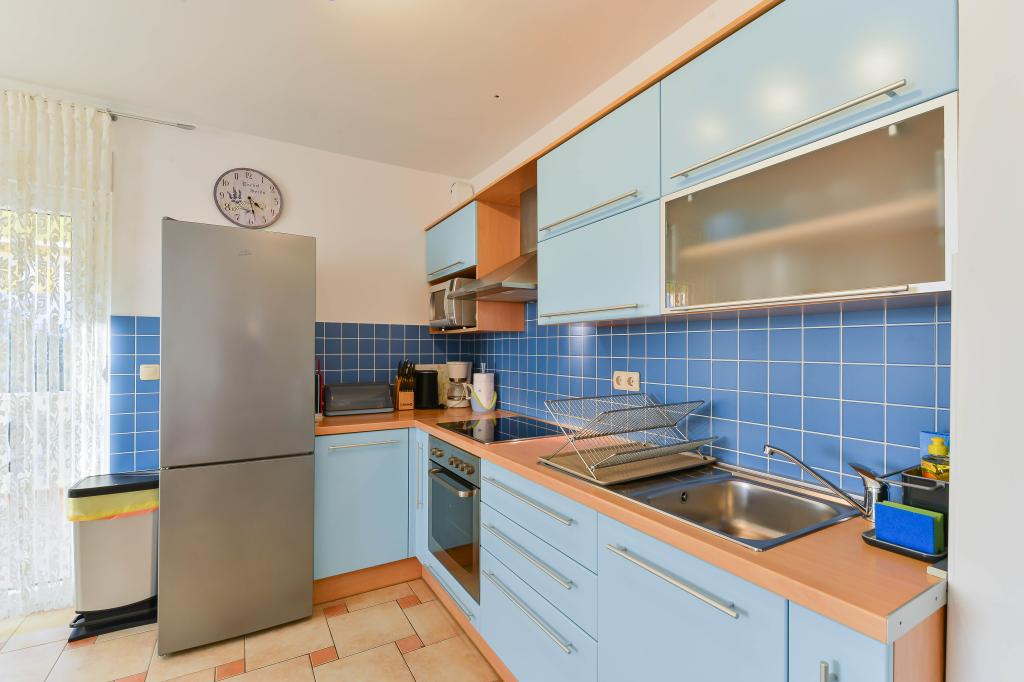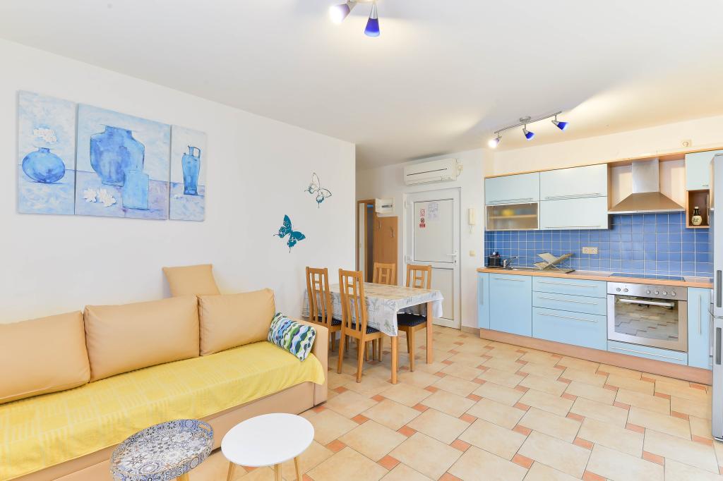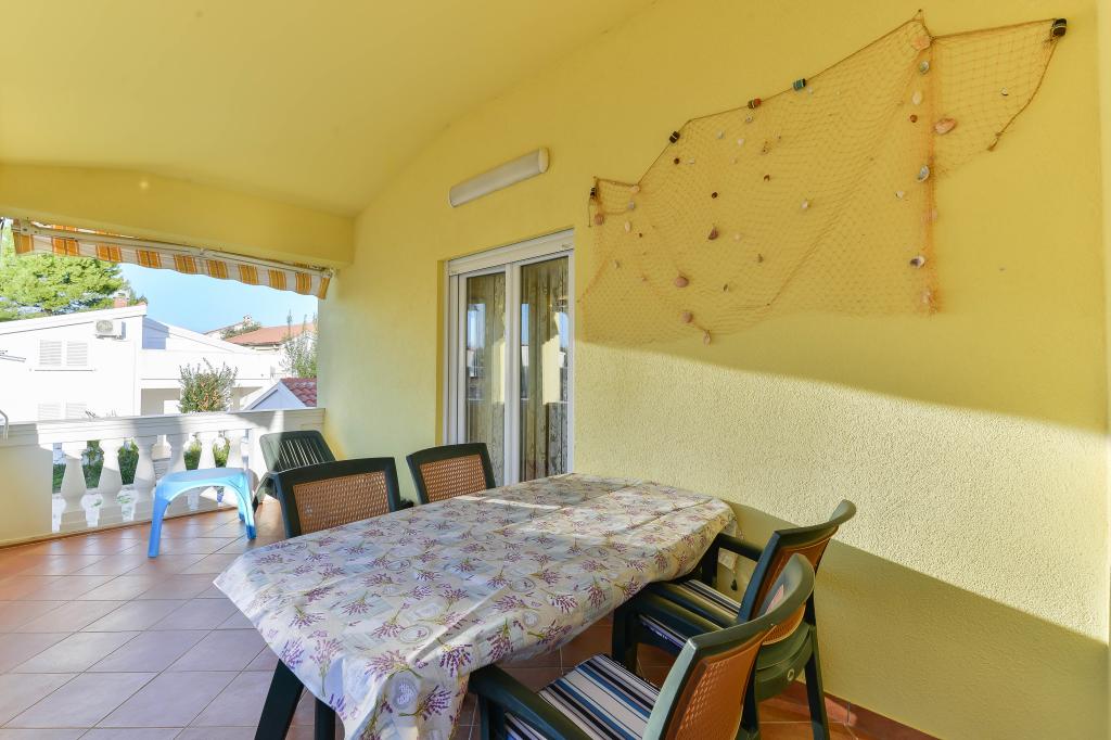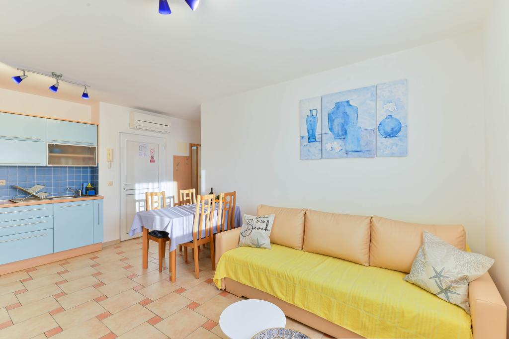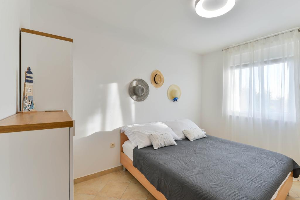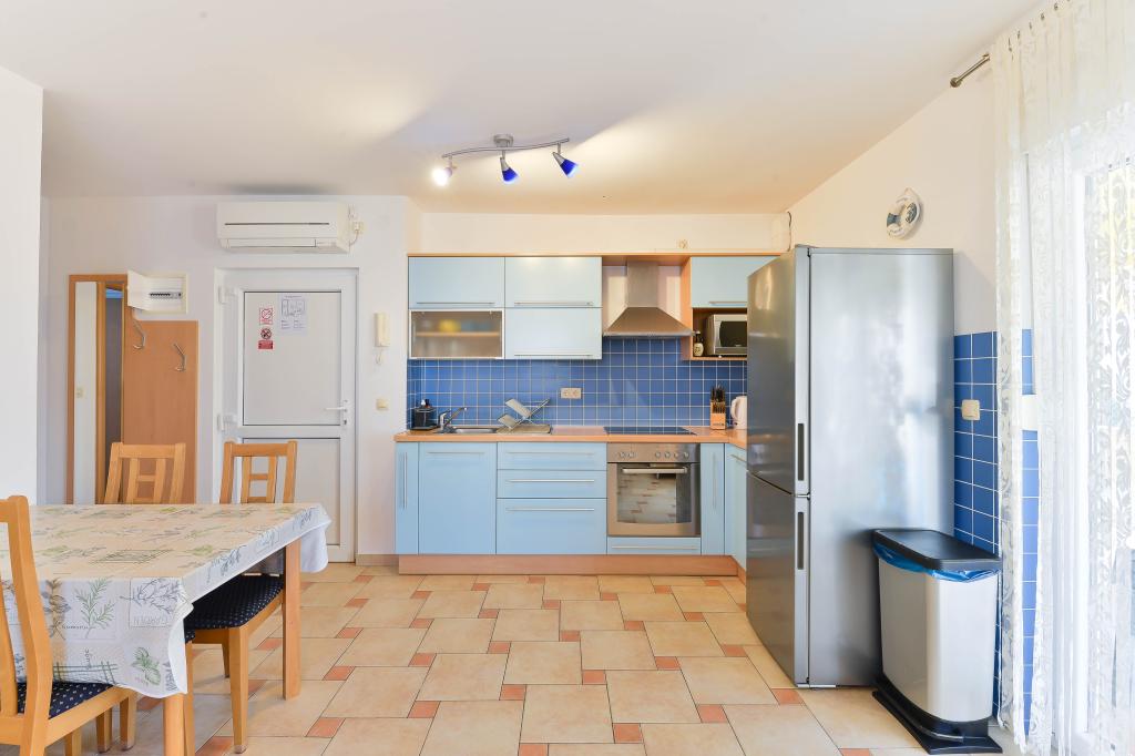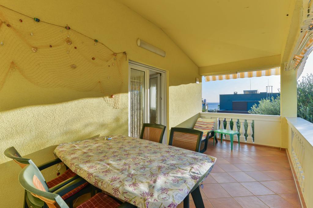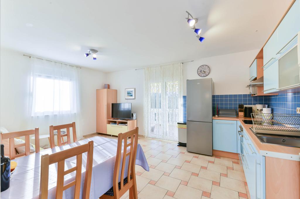 Kompletno opremljeni apartmani, svaka soba ima svoj klima uređaj i TV, nalazi se 40 metara od mora. Bar, restorani i supermarket nalaze se na pješačkoj udaljenosti. Plaža je šljunčana i betonirana, na deset minuta hoda nalazi se pješčana plaža. Kuca ima svoj parking, gril i dječju ljuljačku u vrtu. Gostima su na raspolaganju ležaljke za plažu, suncobrani i bicikli.