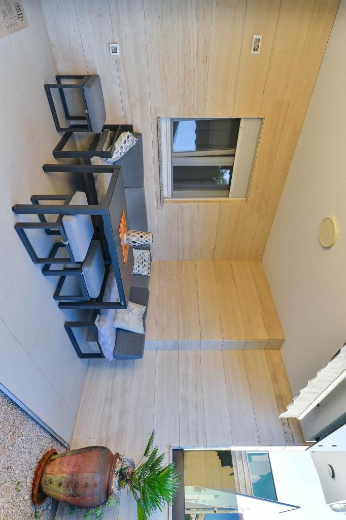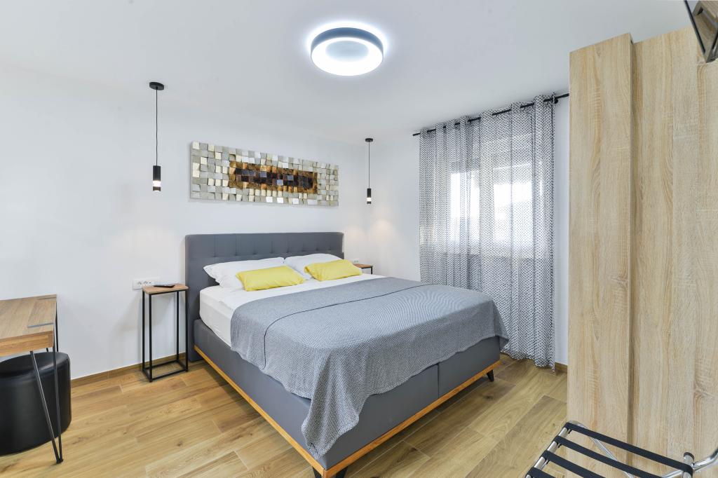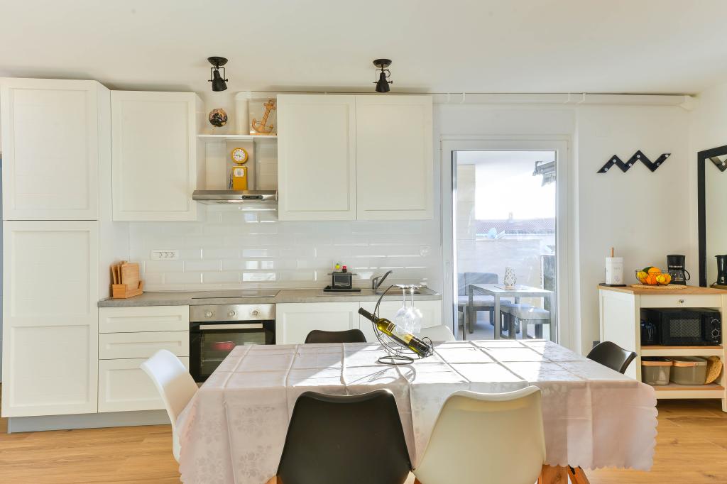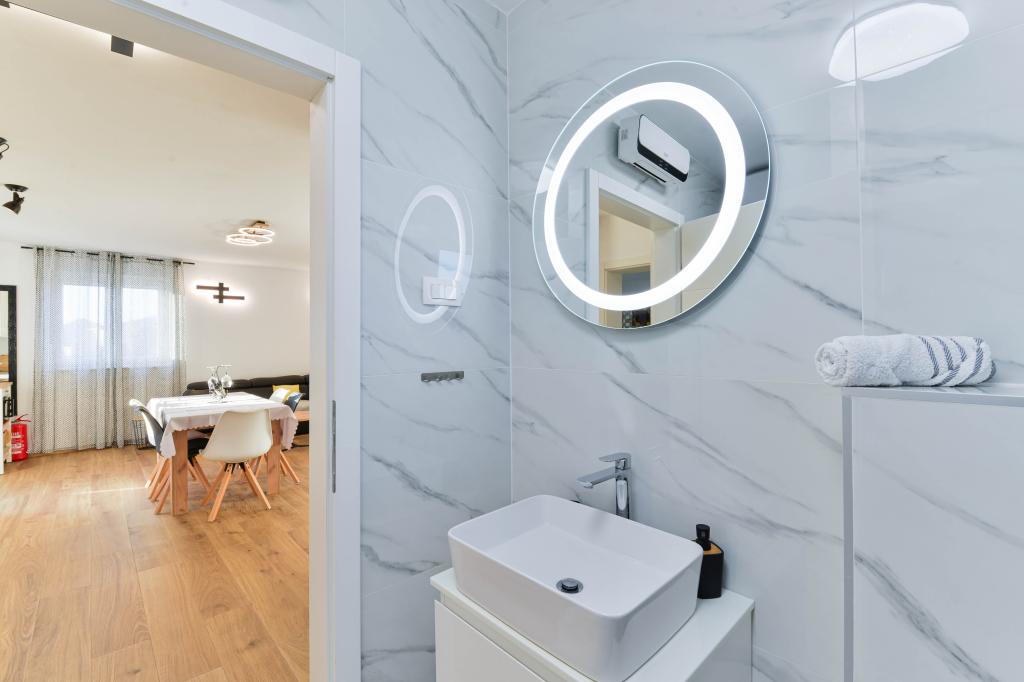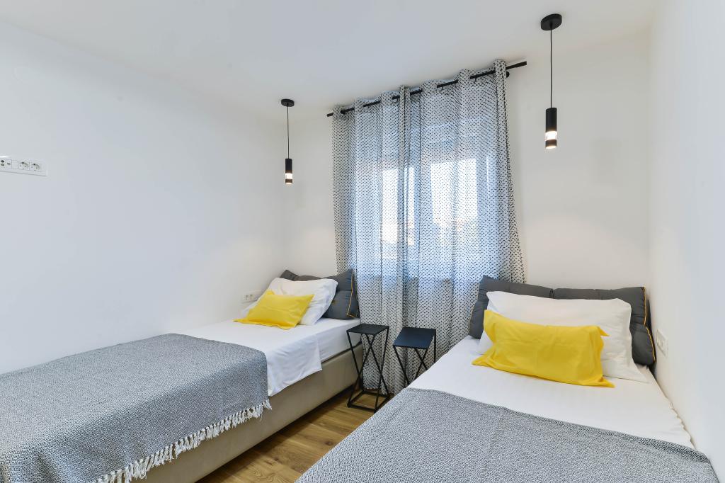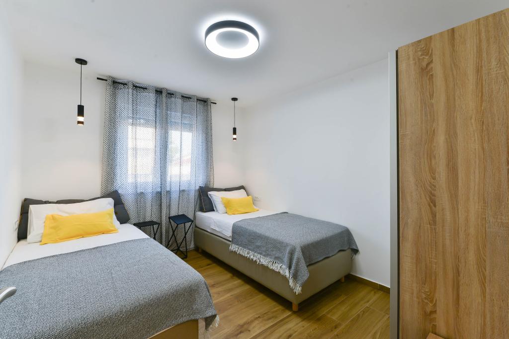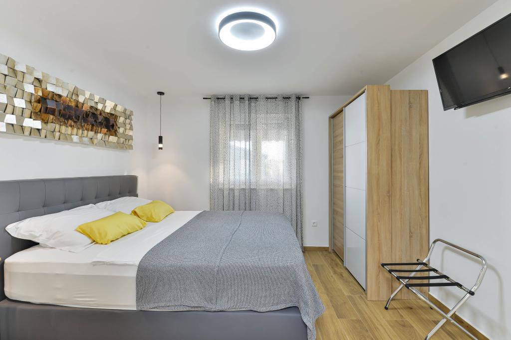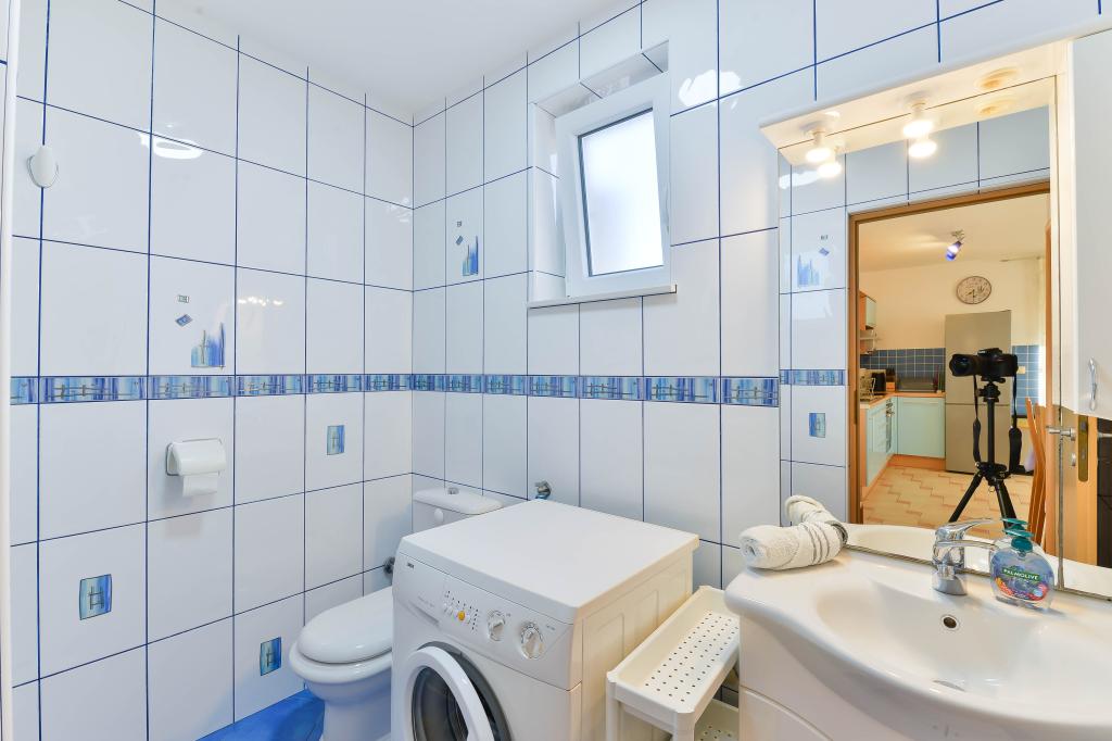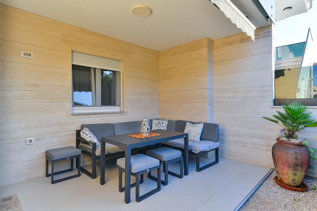 Kompletno opremljeni apartmani, svaka soba ima svoj klima uređaj i TV, nalazi se 40 metara od mora. Bar, restorani i supermarket nalaze se na pješačkoj udaljenosti. Plaža je šljunčana i betonirana, na deset minuta hoda nalazi se pješčana plaža. Kuca ima svoj parking, gril i dječju ljuljačku u vrtu. Gostima su na raspolaganju ležaljke za plažu, suncobrani i bicikli.
