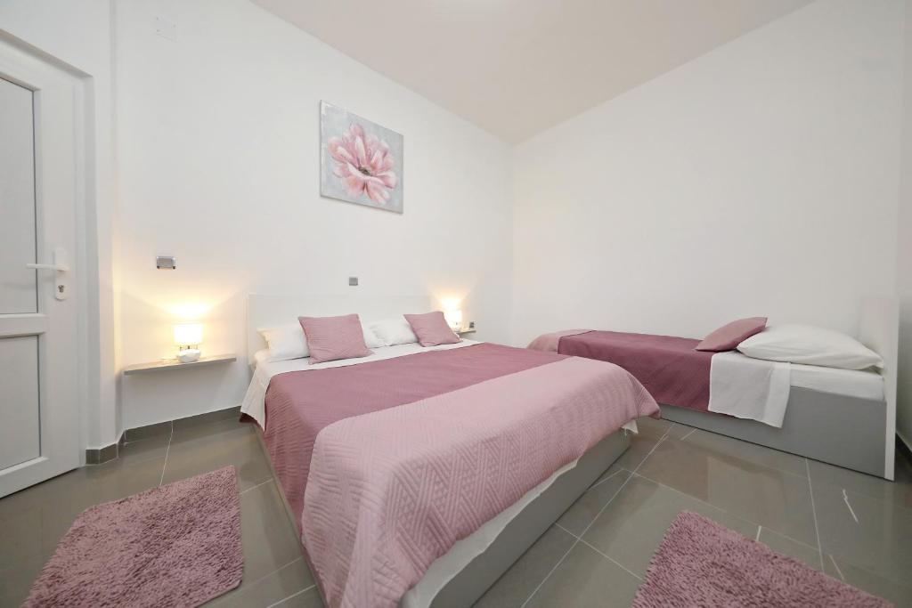 Apartman za 6 osoba. Prije dolaska, odličan kontakt s vlasnikom. Srdačan pozdrav Andel. Prekrasan boravak. Vlasnici su bili jako ljubazni i uslužni. Sam apartman je čist, prostran, opremljen perilicom posuđa, perilicom rublja, aparatom za kavu, tosterom, mikrovalnom, klimom i svim potrebnim posuđem. dodatno tablete za perilicu posuđa, ručnici, ležaljke. Ukusne rajčice i grožđe u vrtu za goste. Vrlo blizu plaže Jadro. U blizini trgovine, pekare i ambulanta. Iskreno preporučam.