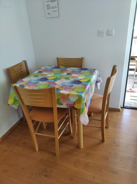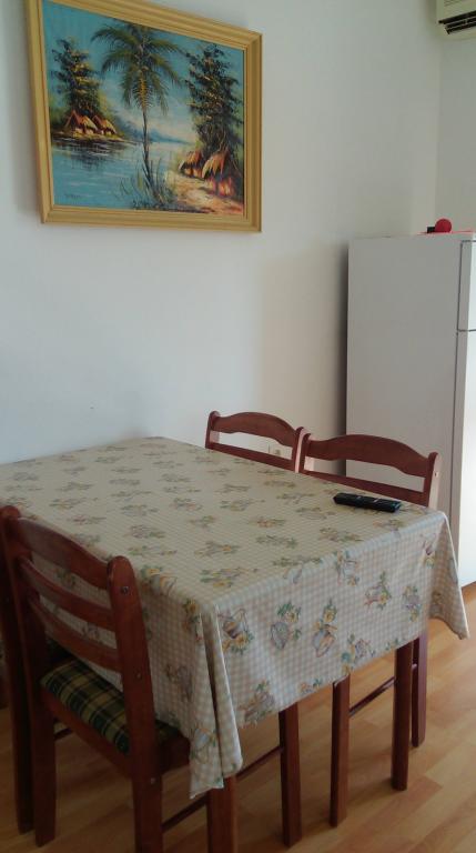 Apartman se nalazi na prvom katu zgrade u prvom redu do mora, uz ribarsku lučicu u uvali Brdonja. Apartman je pogodan za obitelj, ima spavaću sobu, predsoblje sa kuhinjom, 4 ležaja, veliku terasu, ležaljke, 2 zajednička bicikla. Posteljina i kuhinjske krpe uključene su u cijenu.