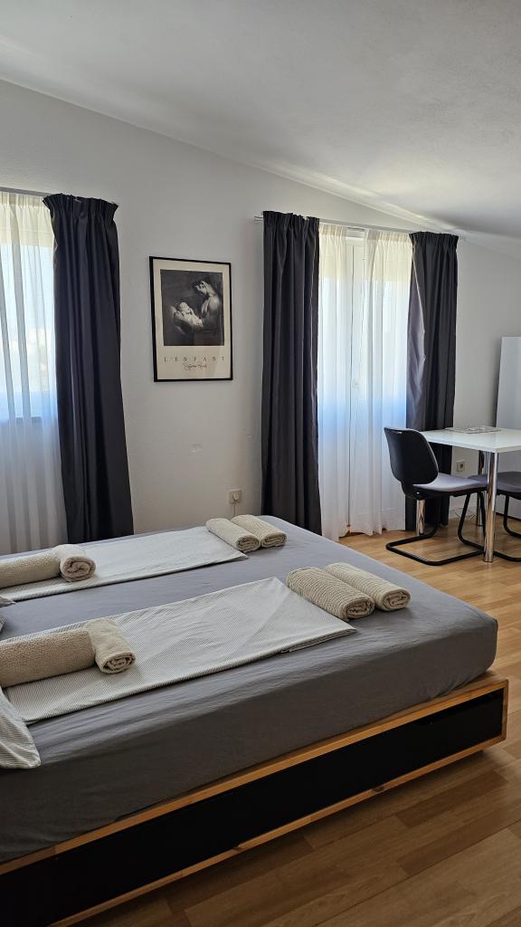 Smještaj je bio u boljem stanju nego što je opisano. Bili smo vrlo ugodno iznenađeni, jer su neke sobe obnovljene, ali slike na internetu ne slave. Vila je na izvrsnoj lokaciji, stigli smo svako odredište pješice za nekoliko minuta. Bilo je vrlo čisto i uredno, a domaćice su uvijek bile na usluzi da odgovore na pitanja i zabrinutosti. U blizini je bilo mnogo restorana i barova kako biste ugasili žeđ. Otok je pogodan za obiteljski odmor, kao i za aktivni sportski odmor. Čak ni stranke tigrovi nisu prekratke, budući da u središtu ima nekih barova, koje su uvijek ispunjene u sezoni. Vrlo svestrani otok koji nudi nešto za svakoga. Od mlaznog skijanja, zabave, zabave za djecu na plaži dalje putuju do obližnjih naselja kao što su Zadar, Krk, Split i više Navečer smo često provodili sate u Steinpavillionu za roštiljem, gdje nas je obitelj domaćin posjetila i napravila za zabavnu večer. Za ovu cijenu - dar! Vrlo preporučljivo! Vratit ćemo se iduće godine