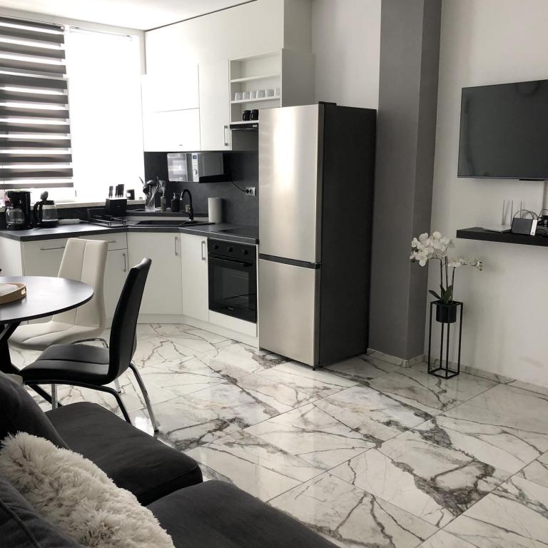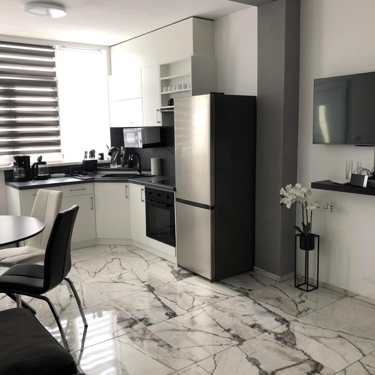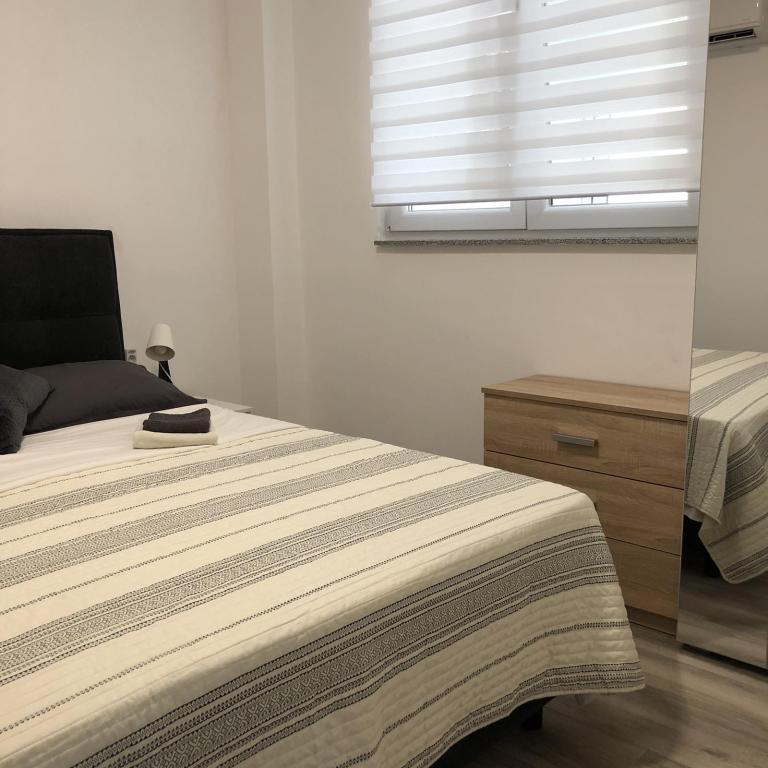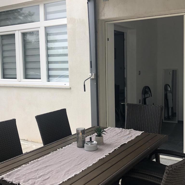 Apartmani Šmit smješteni su u prvom redu do mora, svega nekoliko koraka od gradske plaže Jadro, što ih čini idealnim izborom za goste koji žele biti što bliže moru i plaži. Gostima je na raspolaganju besplatno parkirno mjesto u ograđenom dvorištu objekta, što osigurava dodatnu sigurnost i bezbrižnost tijekom boravka. Svaka smještajna jedinica ima terasu s pogledom na more, ugodan prostor za sjedenje te TV. Apartmani su potpuno opremljeni, a kuhinje uključuju hladnjak, mikrovalnu pećnicu i sav potreban pribor za pripremu obroka. Svaki apartman ima privatnu kupaonicu s tušem, a svi su prostori klimatizirani kako bi boravak bio ugodan i tijekom toplih ljetnih dana. U neposrednoj blizini objekta, svega 5 minuta hoda, nalaze se svi važni sadržaji otoka Vira – restorani, kafići, trgovine, pekara i šetnica uz more – što Apartmane Jadro čini odličnim izborom za parove, obitelji i goste koji žele odmor bez potrebe za automobilom.