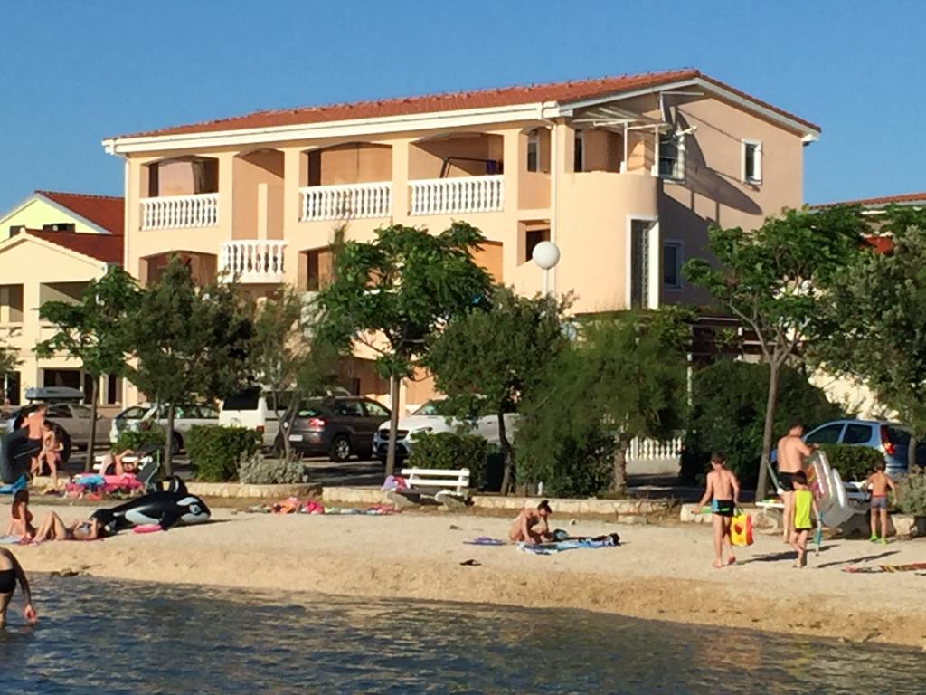 Apartmani s pogledom na more, smješteni prvi red do mora. Na početku otoka Vira. S velikim terasama okrenutim na zapad pružaju nezaboravan pogled na zalazak sunca. Svaki apartman ima osigurano parkirno mjesto. Klima i Wi-Fi internet uključeni u cijenu. Plaža šljunčana i udaljena 20 metara, ulazak u more je sitno kamenje 10 metara, a dalje je pješčano dno pogodno za djecu. Plaža je zaljev na južnoj strani otoka zaštićena od bure.