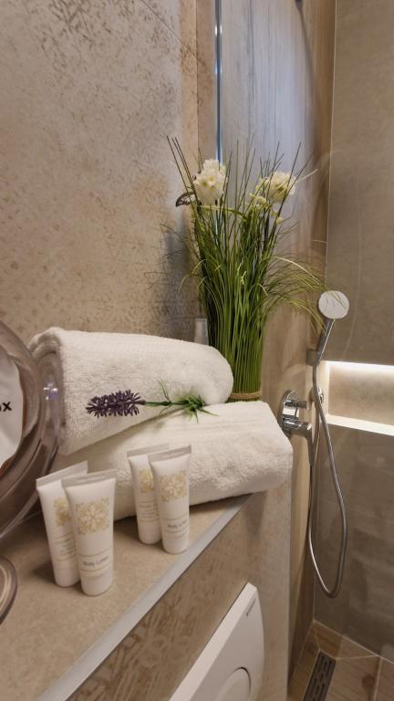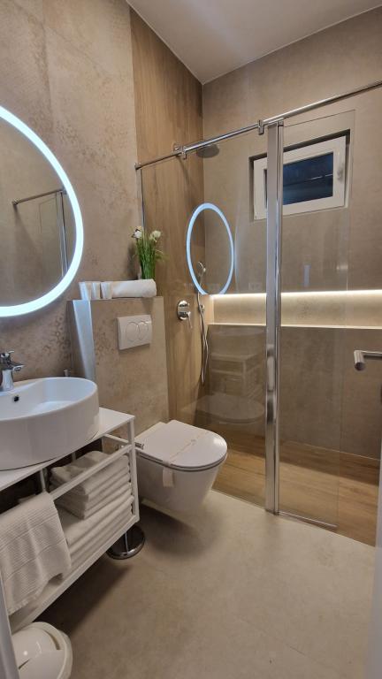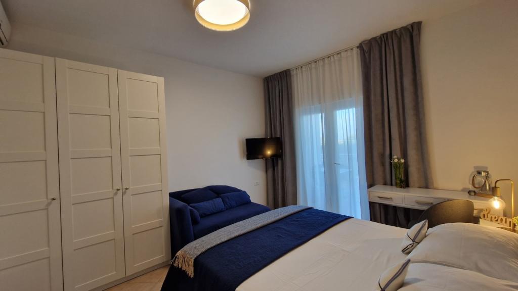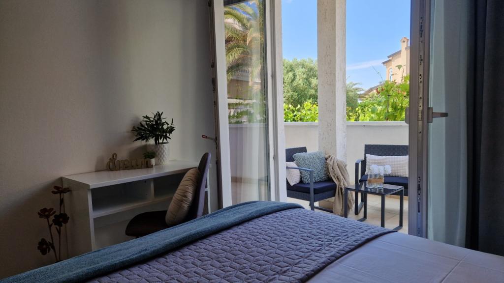 Prekrasna lokacija s klimatiziranim apartmanom i ogromnom terasom s pogledom na more. Apartman ima sve. Potpuno opremljena kuhinja sa svime što nam je bilo potrebno. Spavaća soba ima najudobniji krevet, kupaonica je prostrana i lijepo uređena. Čistoćom smo bili jako zadovoljni jer je stvarno sve čisto. Veselila sam se jutarnjim kavama na terasi s pogledom na more i prekrasan zeleni vrt, a djeca su uvijek htjela jesti samo na terasi jer im je bilo lijepo. Domaćini su izuzetno ljubazni i uslužni. Odmor smo proveli jako dobro, jer smo se stvarno odmorili na tako izvrsnoj lokaciji. Sve pohvale!