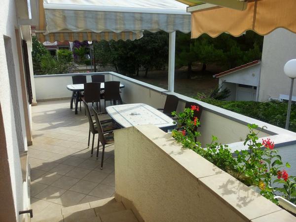 Apartmani se nalaze u neposrednoj blizini plaže (30 m) u uvali Radovanjica na Viru.Do centra se dolazi laganom petominutnom šetnjom.Objekt je smješten u slijepoj ulici tako da nema prometne buke.Nalaze se na katu obiteljske kuće.Raspolažu velikom terasom i zasebnim balkonima.Suvremeno su opremljeni,pogodni za obiteljski odmor.Gosti raspolažu privatnim parkiralištem u hladu.Kuhinje su u potpunosti opremljene svim aparatima kao i potrebnim posuđem.U sobama su Tv prijemnici sa satelitskim priključkom.Gostima je na raspolaganju besplatan Wi-fi kao i korištenje klime uz nadoplatu.U dvorištu se nalazi gril kao i vanjski tuš kojim se gosti mogu koristiti po želji Spavaonice su opremljene potrebnom posteljinom koja se mjenja 1 sedmično kao i ručnicima u kupaonicama.
