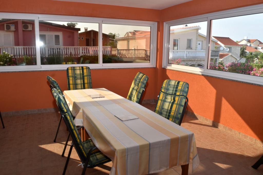 Apartmani na Viru: Idealno mjesto za vaš odmor! Uživajte u savršenom odmoru na otoku Viru u našim apartmanima! Smješteni u mirnom predjelu, samo nekoliko minuta udaljeni od prekrasnih plaža, restorana i svih ostalih zanimljivosti. Prostrana terasa pruža spektakularan pogled na planine i okolni krajolik, dok unutrašnjost apartmana nudi udoban smještaj. U blizini se nalaze brojni restorani, caffe barovi, pekara, fast-food restoran i luna park za djecu, pružajući vam raznovrsne mogućnosti za gastronomsku i zabavnu avanturu. Centar Vira udaljen je ugodnom šetnjom od samo 10 minuta uz more, gdje vas očekuju dodatne zanimljivosti, više restorana, pizzeria i noćni kafići za mlade. Vikendom se ovdje održava uživo glazba, pružajući vam priliku za opuštanje uz popularne i poznate hrvatske pjevače. Ne propustite priliku za nezaboravan odmor na Viru! Rezervirajte naš luksuzni apartman već danas i osigurajte si idealnu bazu za istraživanje ovog prekrasnog otoka!